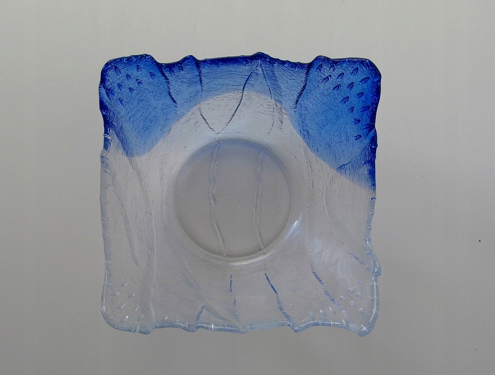 Красива, дизайнерська миска/цукерниця з двоколірного тонованого пресованого скла.