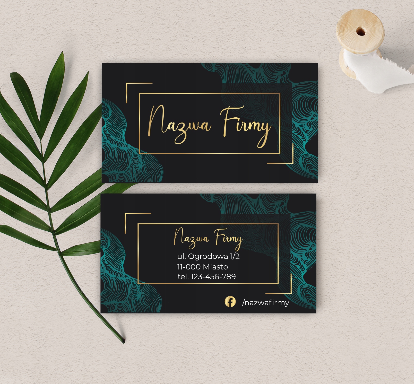 Красиві візитки з геометричними візерунками з золотим логотипом.