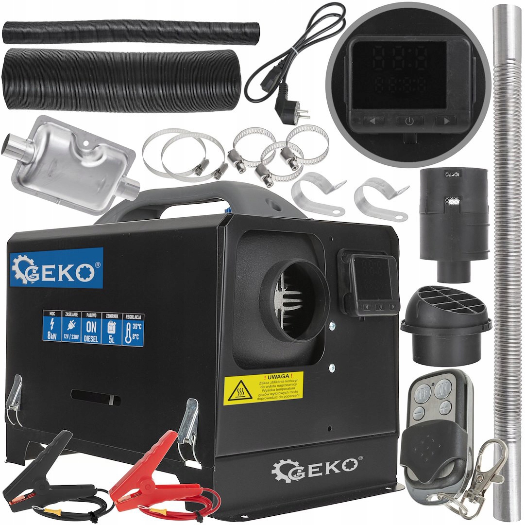 Автомобільний обігрівач/стоянковий обігрівач 230 В/12 В 8 кВт із вбудованим паливним баком — потужний пристрій, який забезпечує тепловий комфорт скрізь, де це потрібно. Ідеальне рішення для обігріву автомобілів, будівельних машин, суден і кемпінгів. Завдяки потужності 8 кВт, вбудованому паливному баку та інтуїтивно зрозумілому управлінню, це незамінна частина обладнання для тих, хто цінує комфорт і термонезалежність, навіть у найважчих умовах.