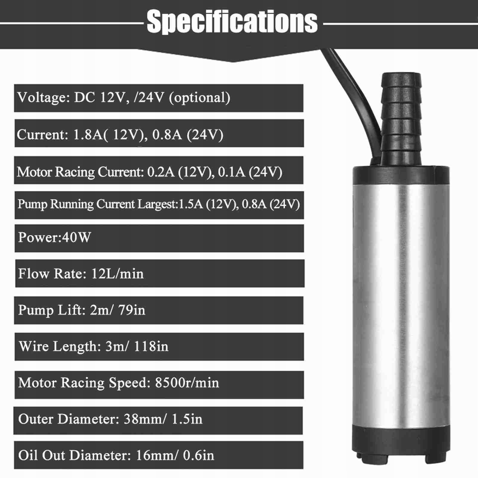 Занурювальний насос постійного струму 12 В/24 В для перекачування дизельного пального, води, 38 мм, води, масла, дизельного палива, перекачувального насоса, дозаправки