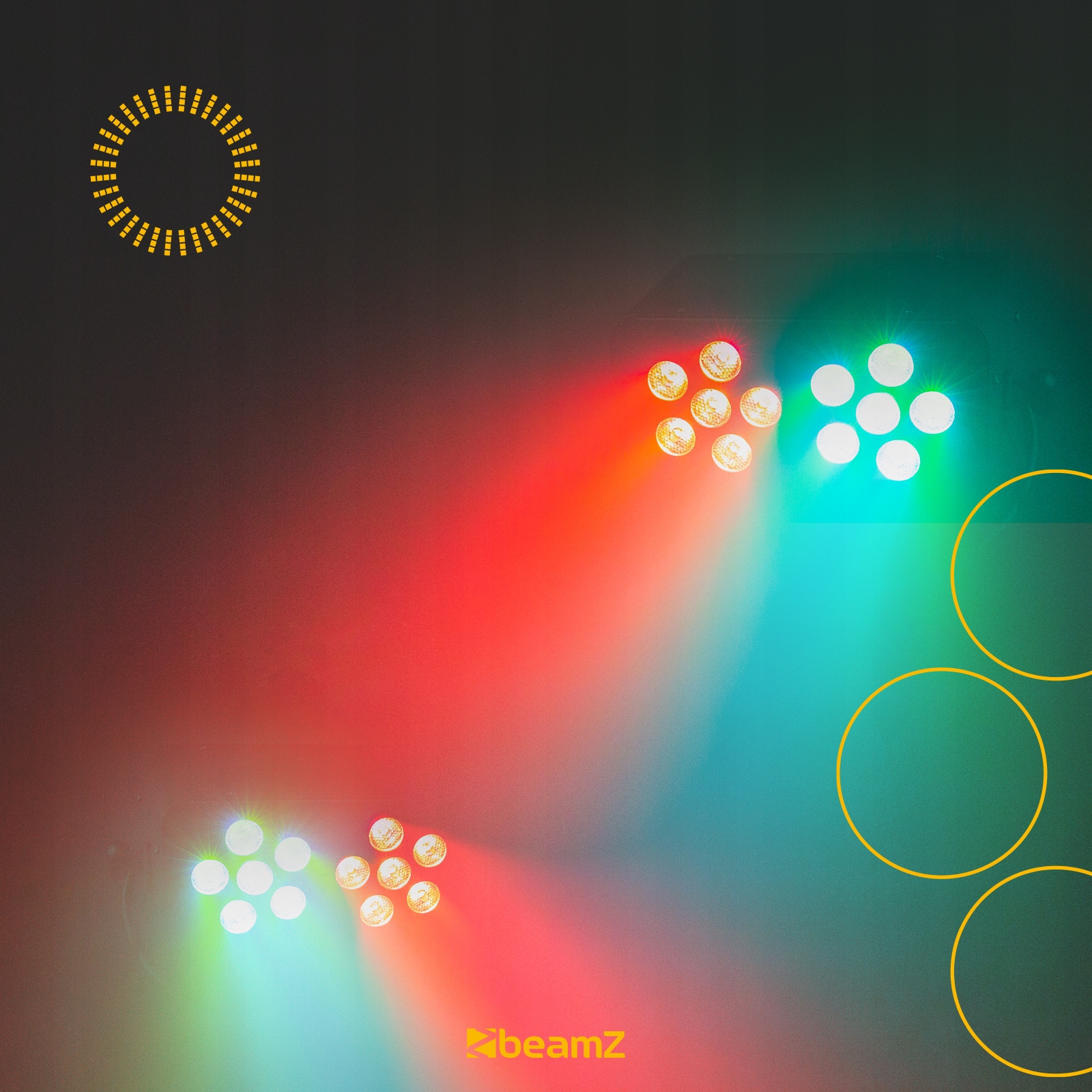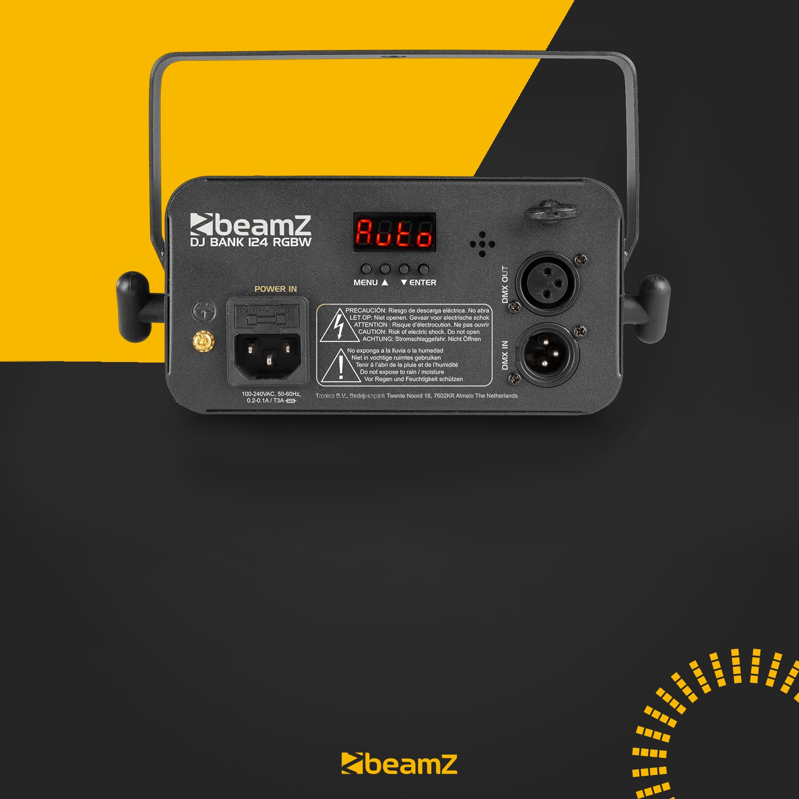 Компактний, потужний, простий, але універсальний — ось у двох словах DJ-банк BeamZ, ідеальний для будь-якого ді-джея чи сцени. Компактний, тому що це фактично 2 точки PAR, але в одному корпусі. Потужний, оскільки має високу світловіддачу завдяки 12 світлодіодам. Простий, тому що ним може керувати будь-хто, частково завдяки пульту дистанційного керування, що входить у комплект. Розширено, оскільки є різні режими на вибір. Автоматичне, ручне, звукове або DMX керування, вибір за вами!