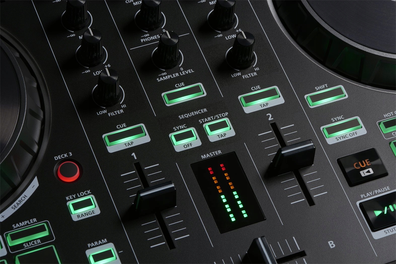 DJ-202 — це двоканальний чотиридоріжковий контролер Serato Intro з оптимізованими колесами для скретчингу та вісьмома звуками в кожному наборі TR, включаючи: Бас-барабан, малий барабан, закритий капелюх, відкритий капелюх, Том, обід, плескання та їзда. Крім того, контролер дуже міцний і портативний, що робить його ідеальним інструментом для початківців і досвідчених діджеїв.
