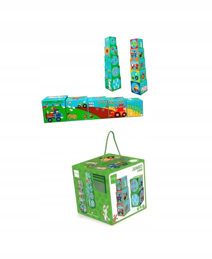 Завдання дитини — скласти піраміду з 5 кубиків, починаючи з найбільшого, так, щоб утворилася логічна послідовність із тварин, персонажів і цифр. Крім того, дитина може розташувати кубики горизонтально, один біля одного, щоб правильно розміщені ілюстрації створювали цілісну картинку. Це чудова розвага і чудове навчання водночас.