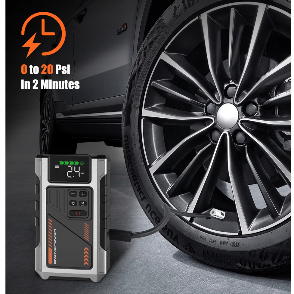 Джамп стартер Power Bank з 150PSI компресором, 6000A автомобільним допоміжним акумулятором