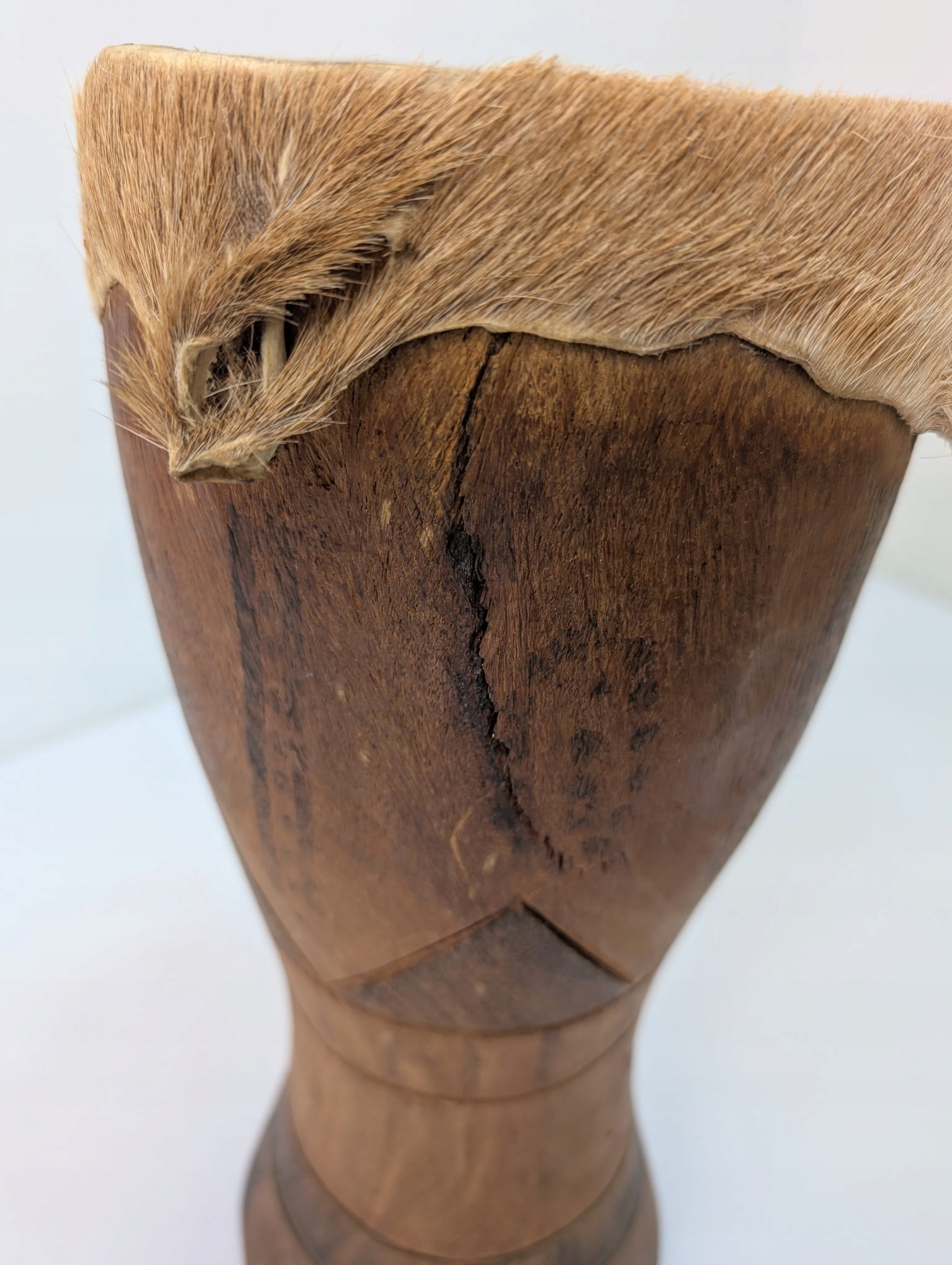Африканський кубковий барабан, виготовлений із дерева, покритого козячою шкірою.