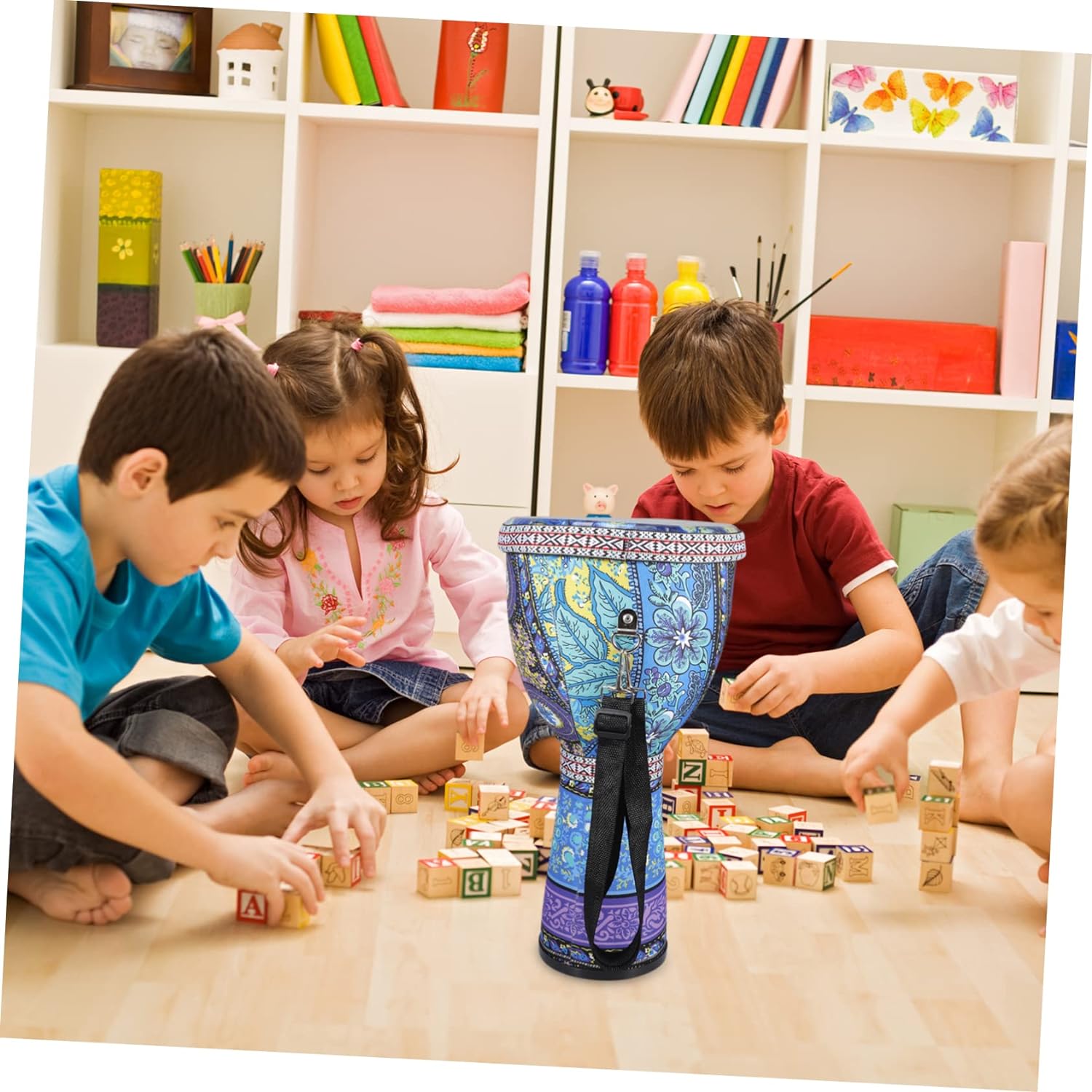 Дитячий напольний барабан чудової якості виготовлення та якісного матеріалу нашого виробу забезпечують делікатні деталі. Барвистий барабан Цей африканський барабан виготовлено зі зносостійких і міцних матеріалів, щоб задовольнити потреби тривалого використання. Дитячий ударний інструмент з африканським барабаном ідеально підходить для виступів, вечірок і музичних фестивалів. Музичний інструмент для дітей, його компактна і легка конструкція робить його більш зручним і легким у транспортуванні, коли він не використовується. Дитячі барабани, міцні, зносостійкі, що привертають увагу, цей підлоговий барабан непросто деформувати та зламати.