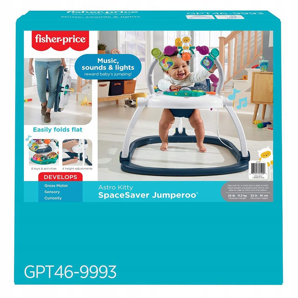 - Додаткова інформація: Звукові та світлові ефекти; Регулювання висоти; Сприяє розвитку моторики дитини; Інтерактивна навчальна панель; Розкладна конструкція; Знімна прокладка, яку можна прати в пральній машині; Вага: 5,72 кг; 4-ступеневе регулювання висоти