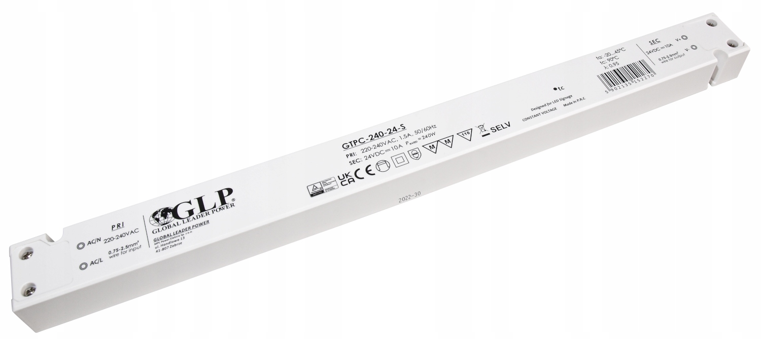 ДЖЕРЕЛО ЖИВЛЕННЯ ПОСТІЙНОЇ НАПРУГИ ІМПУЛЬСНИЙ ПЛОСКИЙ СВІТЛОДІОД МЕБЛІ 24В 240ВТ PFC SLIM GLP
