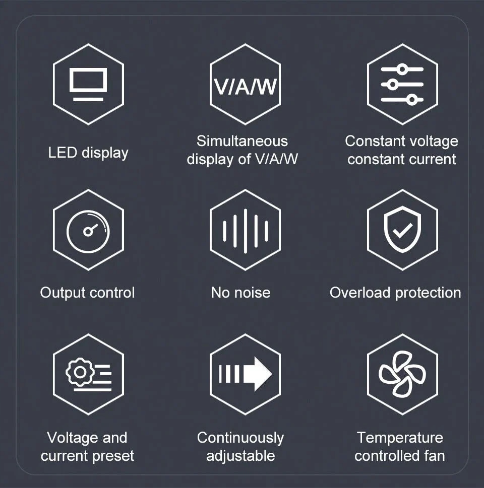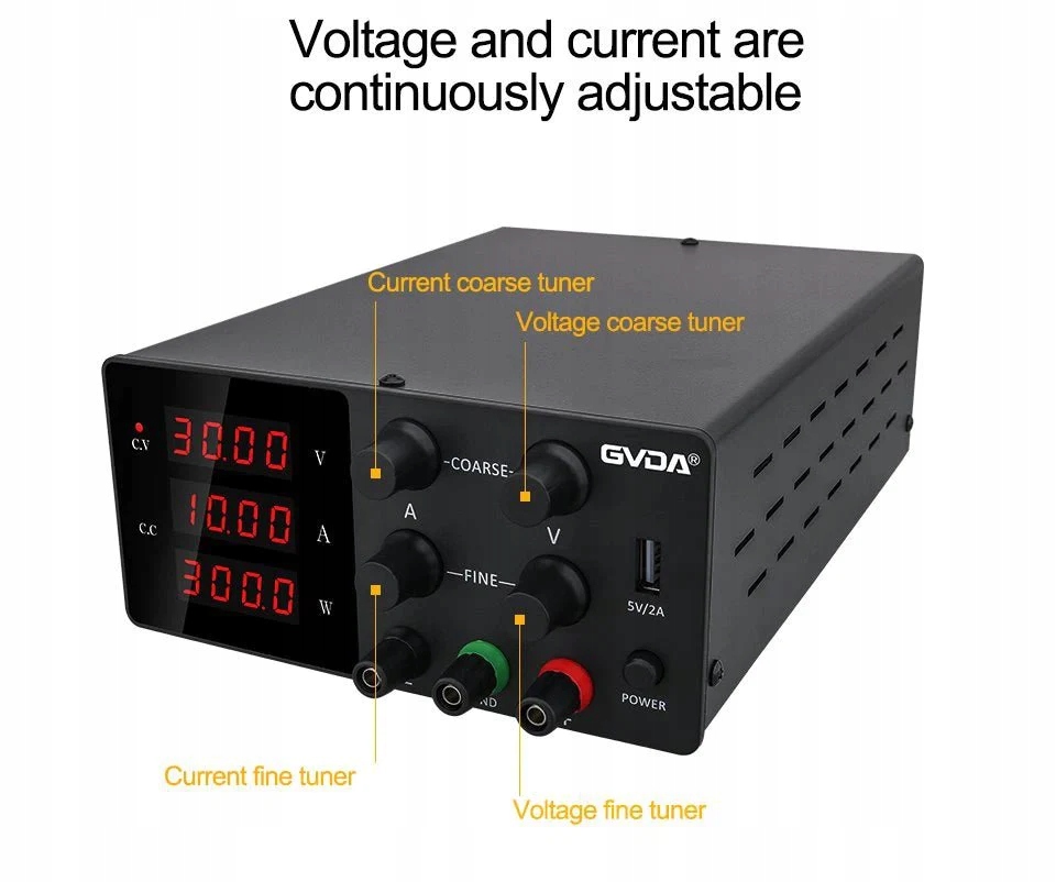 1. Спочатку поступово відрегулюйте кнопку «Грубий» відповідно до необхідного натягу, а потім поступово відрегулюйте кнопку «Точне», щоб забезпечити належну посадку. Наприклад, якщо вихідна напруга повинна становити 12 В, будь ласка, встановіть кнопку «грубе налаштування» на 15 В, а потім установіть кнопку «точне налаштування» на 12 В, інакше напруга не досягне 12 В і не досягне максимальної вихідної напруги. 12 В