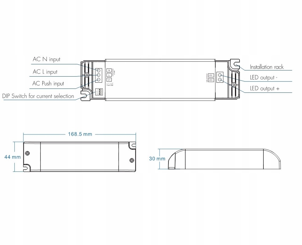Світлодіодний блок живлення 36 Вт із фазовим затемненням і функцією Push-dim