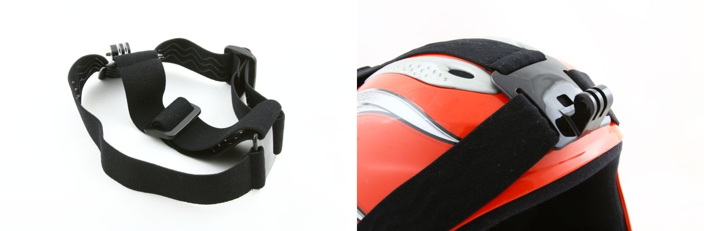 Крім того, ремені кріплення регулюються в дуже широкому діапазоні, що дозволяє кріпити камери на голову, шолом, капелюх та інші елементи, окружність яких коливається від 45 см до 100 см. Монтажні стрічки дуже гнучкі, тому ідеально адаптуються до будь-якої поверхні та гарантують стабільне кріплення.