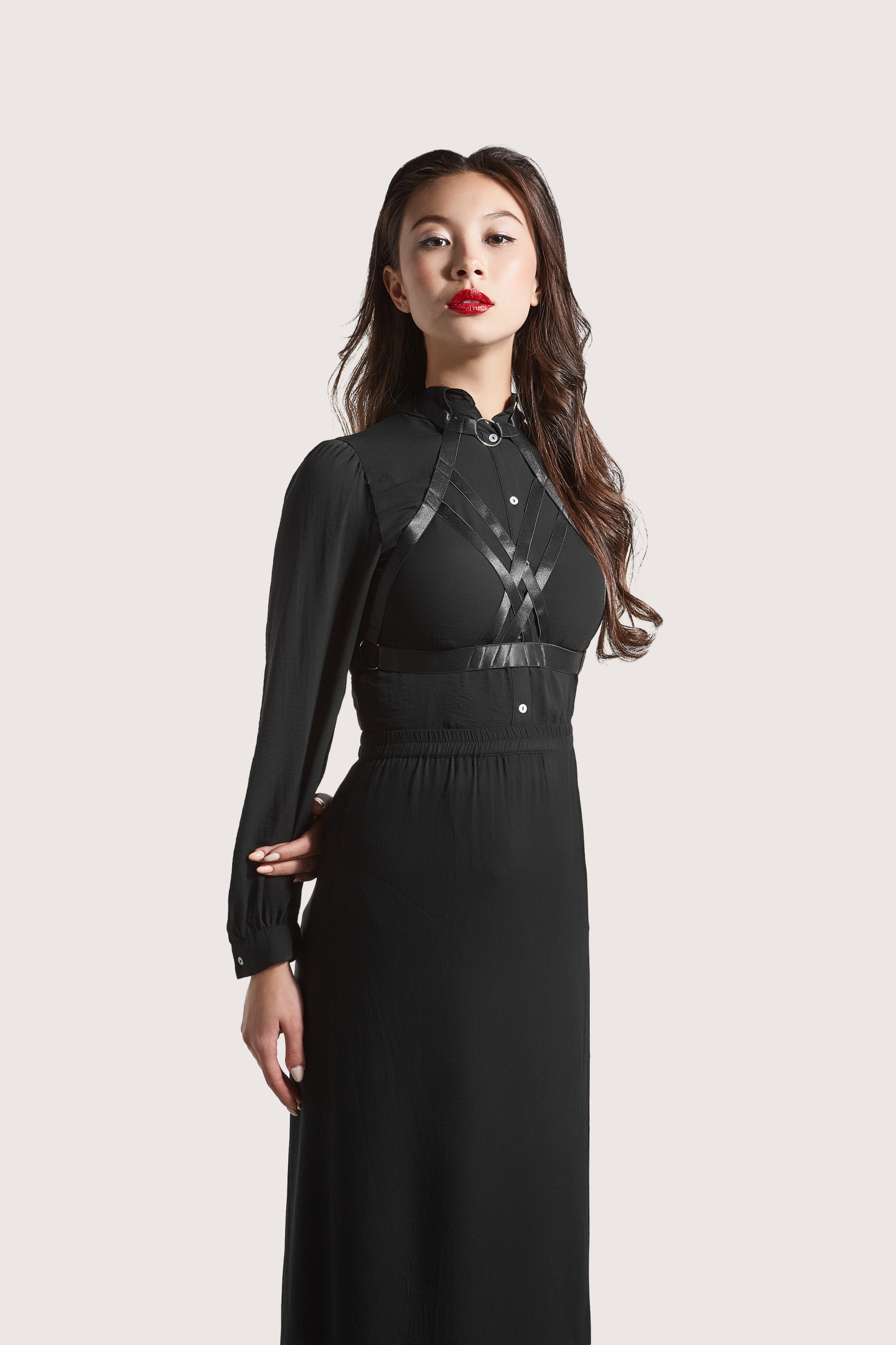 нижня білизна - це доповнення, яке є чудовим завершенням сексуальних та еротичних стилізацій. Сьогодні джгут - це елемент повсякденного вбрання, який підкреслює жіночність, сексуальність та характер сучасної жінки. Джгут складається з ремінців, які чуттєво обмотують тіло. Він виготовлений з щільних гнучких смужок різної ширини. Джгути кріпиться на спині і шиї гачком. Ремінці регулюються і не викликають дискомфорту при носінні. Модель доповнюється металевими елементами. Спеціальне скорочення підкреслює всі переваги фігури та додає спеції стилізації. Модель на фото: Розміри: 83-62-86, висота-169 см. Він носить універсальний розмір.