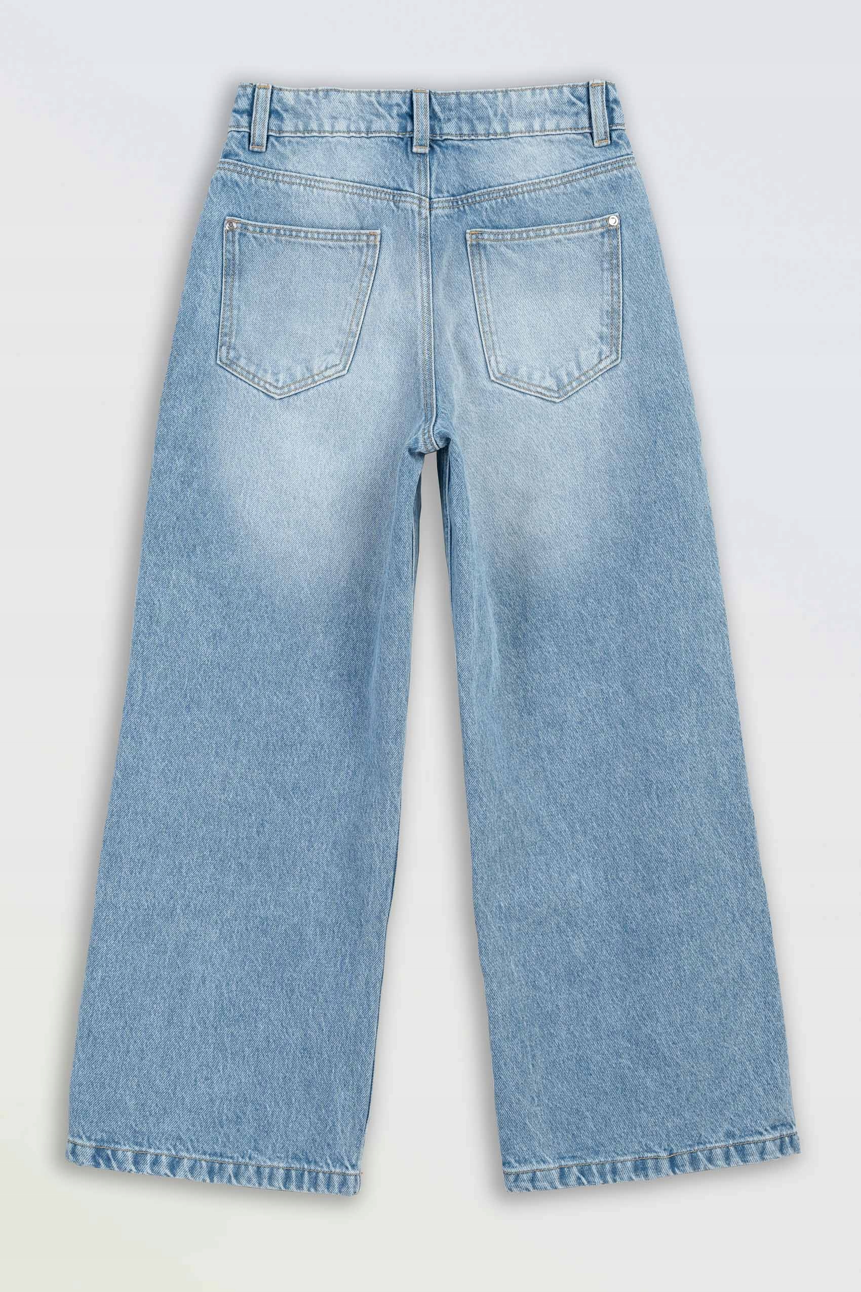 ⭐ джинси світло-блакитних дівчат з пухким розрізом і широкими ногами до обов'язкових для молодих любителів міського стилю. Виготовлений з м'яких бавовняних джинсів , пропонують комфорт протягом усього дня, а ефект стирання надає їм модного характеру.