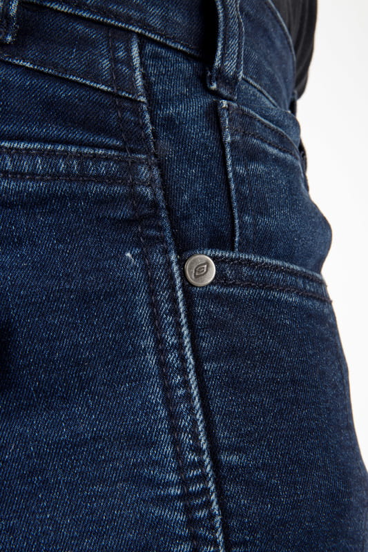 Мотоциклетні джинсові штани Hornet мають знімні наколінники CE Рівень 2. Кишені на стегнах дозволяють додати протектори. гнучкий вставки над колінами забезпечують свободу рухів. Довгі блискавки полегшують це надягання і зняття штанів. Штани виконані в тонкому крої.