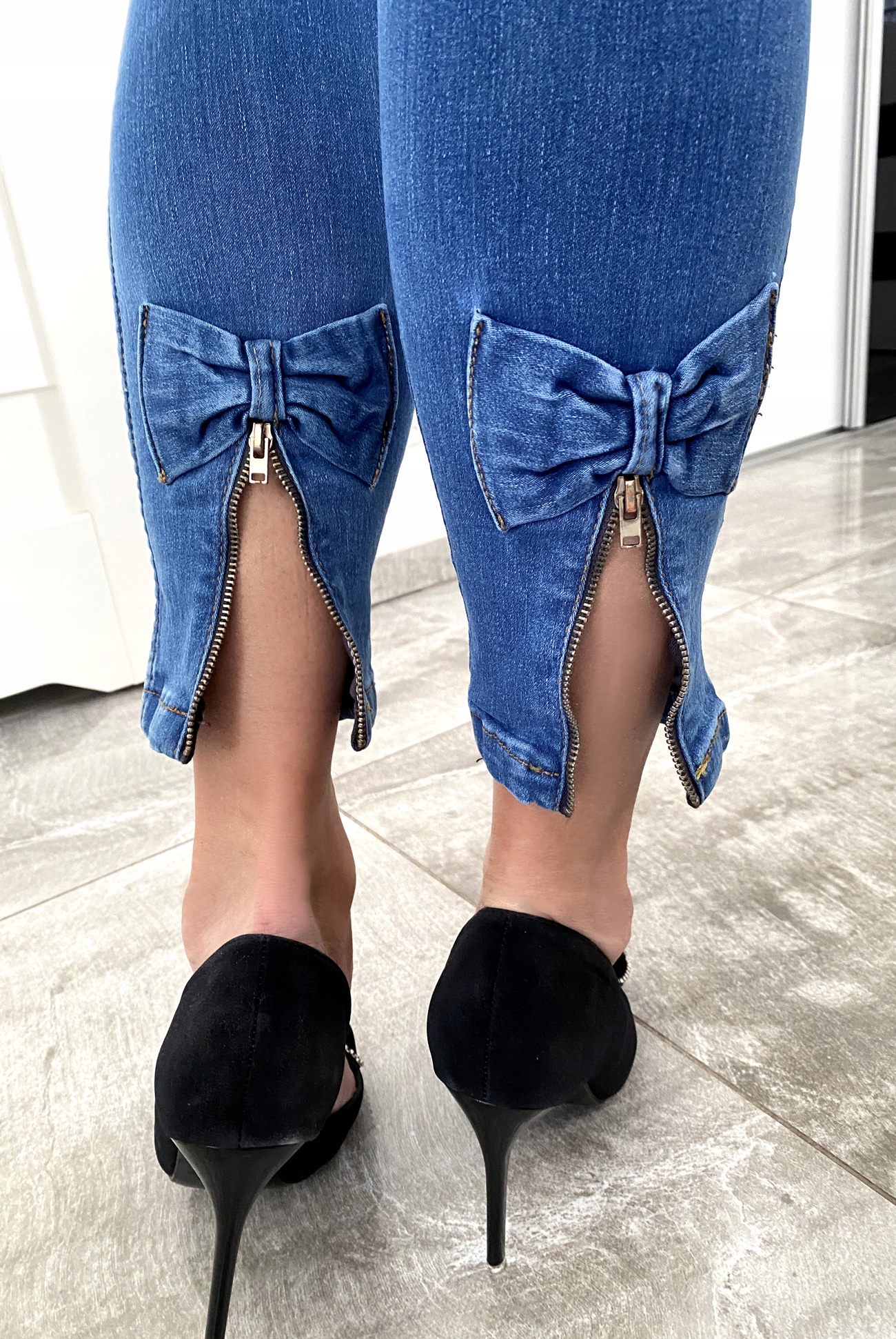 ДЖИНСИ З ВИСОКОЮ ТАЛІЄЮ ЕЛАСТИЧНІ МОДНІ БАНТИ НА НОГАХ БЛИСКАВКА 375B