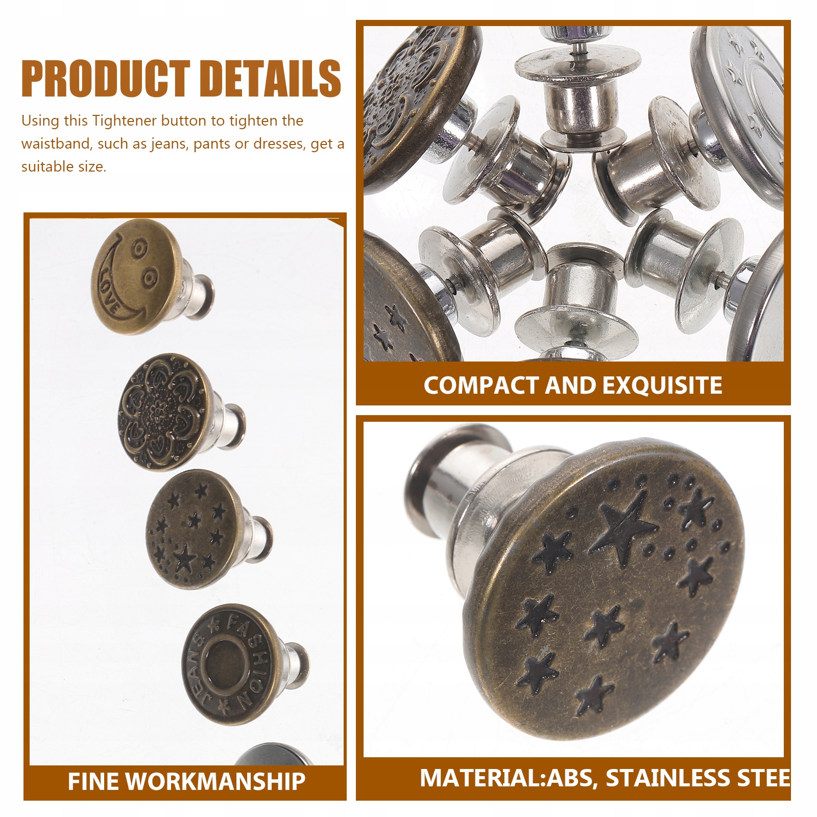 Якщо ваші штани чи одяг завеликі чи занадто вільні, ці кнопки можуть вам допомогти. Цю регульовану пряжку на талії можна використовувати для джинсів, суконь, спідниць, штанів, комірів тощо. Красиво оформлені пришивні ґудзики також можна використовувати для прикраси одягу. У комплекті ви отримаєте багато регульованих пряжок на талії, щоб ви могли поєднувати його з різними нарядами.