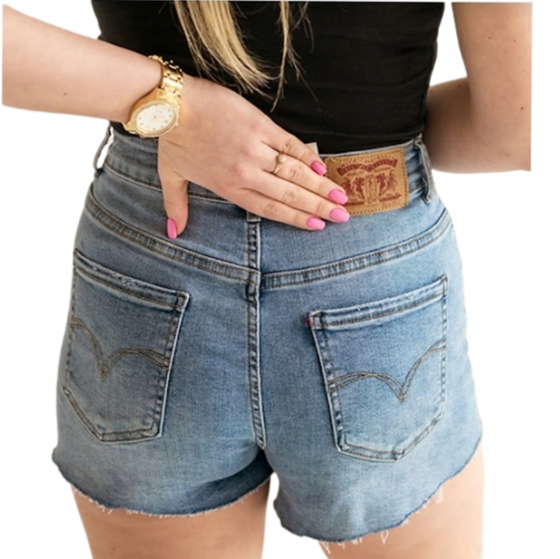 короткі джинсові шорти з модними, нерегулярними ударами. Моделюється на хіт -моделі бренду Levis. Шорти мають стандартний середній стан. Кишені на спині з модним зшиванням. Шорти м'які, але також гнучкі, тому вони будуть відповідати вашим формам. Ідеальна модель на літо!