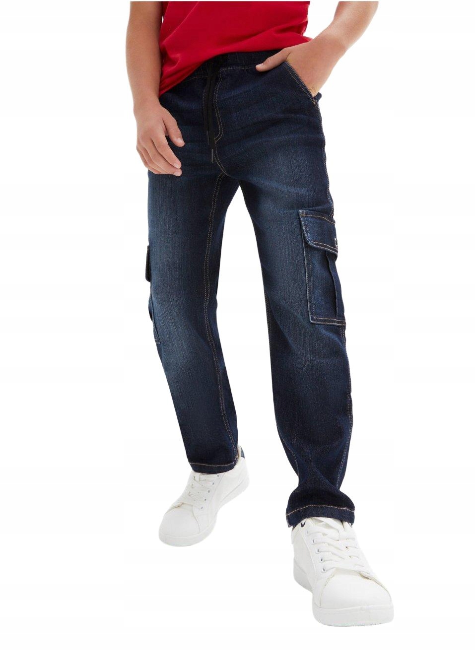 spodnie jeansowe chlopięce bojówki granatowe z wiązaniem zc b.p.c 170