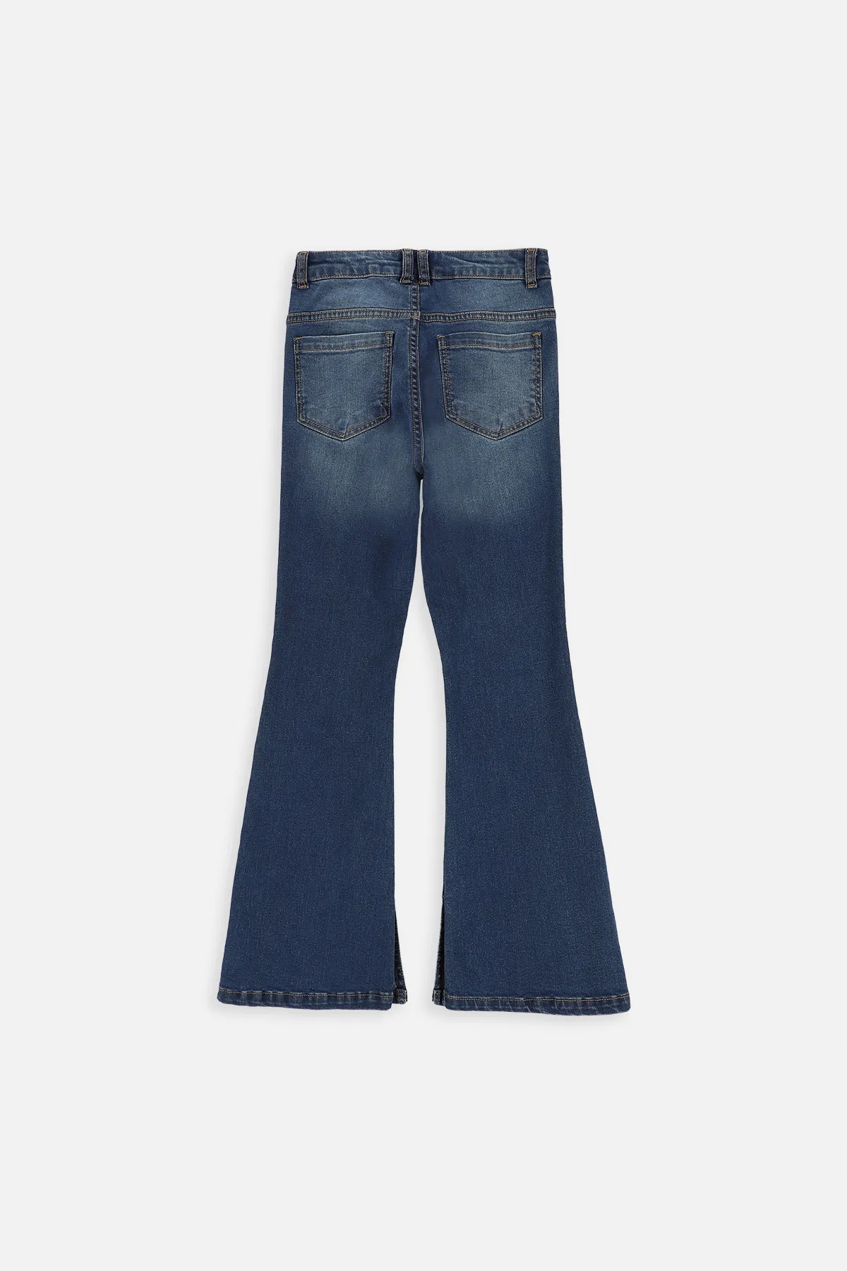джинсові штани для дівчат. Модель з розширеною ногою спалаху. Мати кишені.