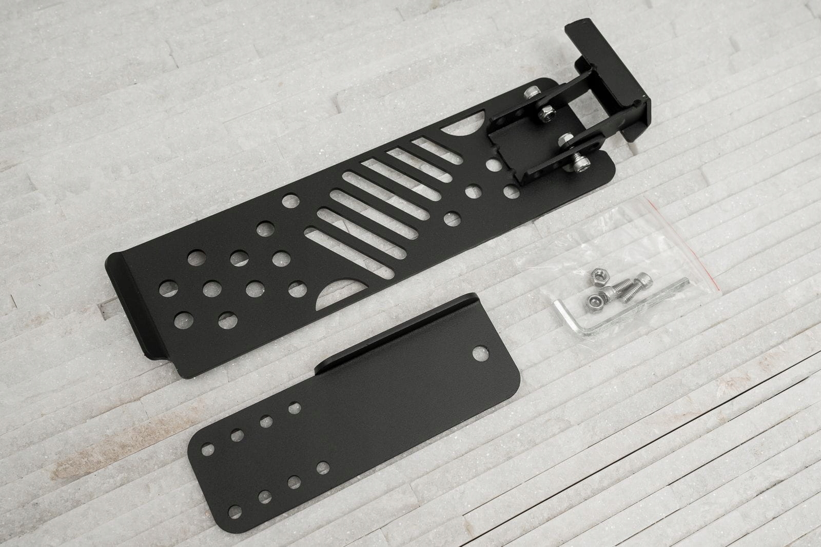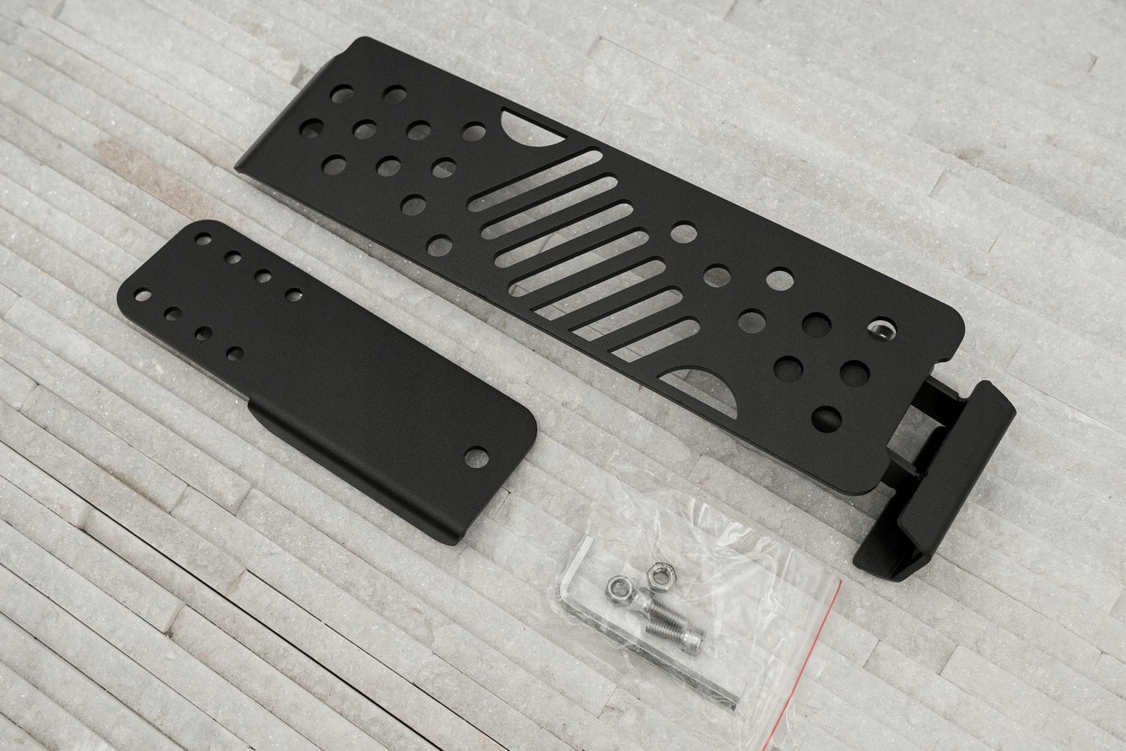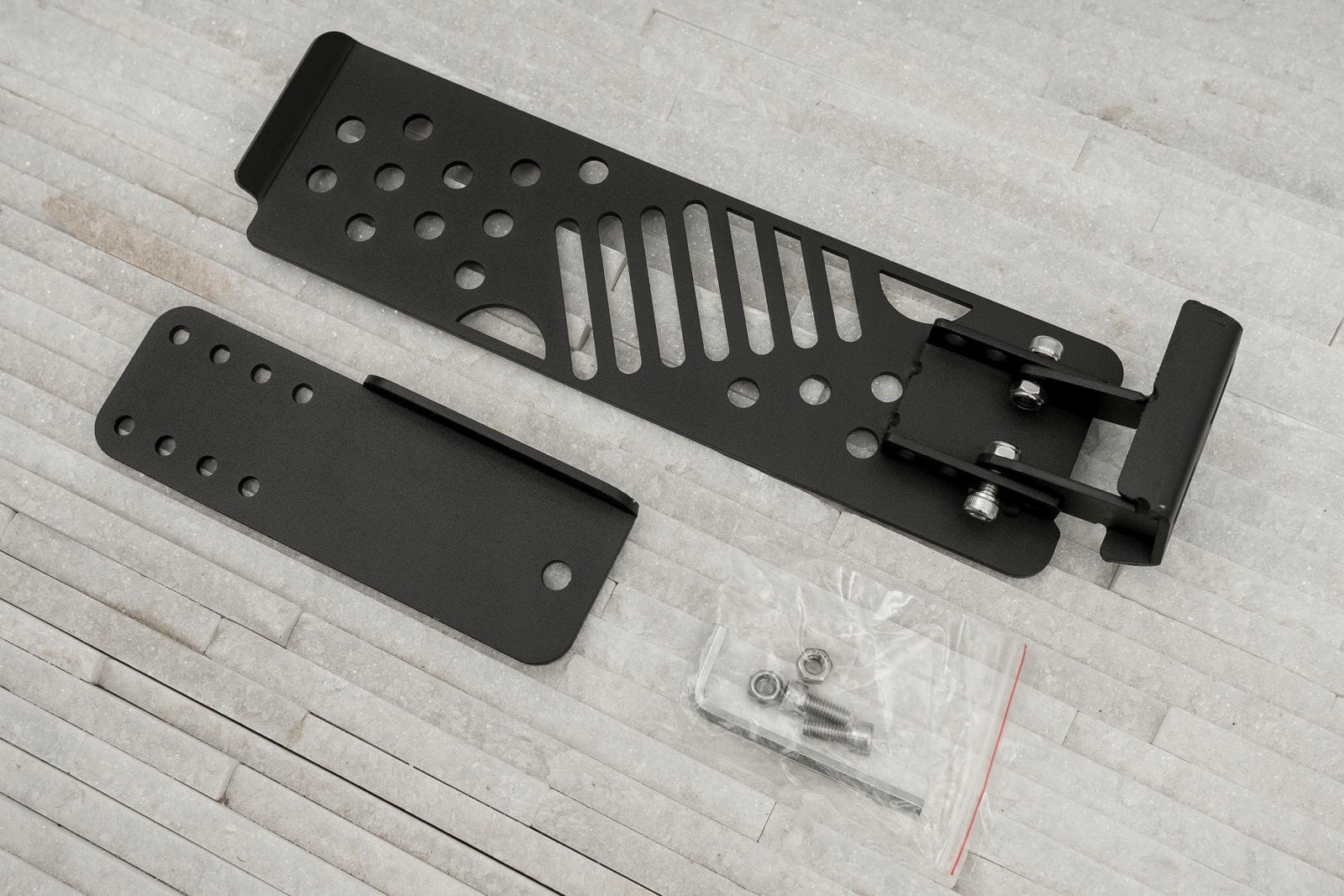 Перфорації на поверхні стояка запобігають ковзанню взуття, а стабільність цілого забезпечується встановленням опори на землю за допомогою елементів, прикріплених у наборі. Педаль встановлюється на стінку перегородки одним гвинтом, без будь -яких перешкод. Педаль має 4 можливі налаштування, які надають кожному драйверу знайти оптимальне положення на задній частині стопи.