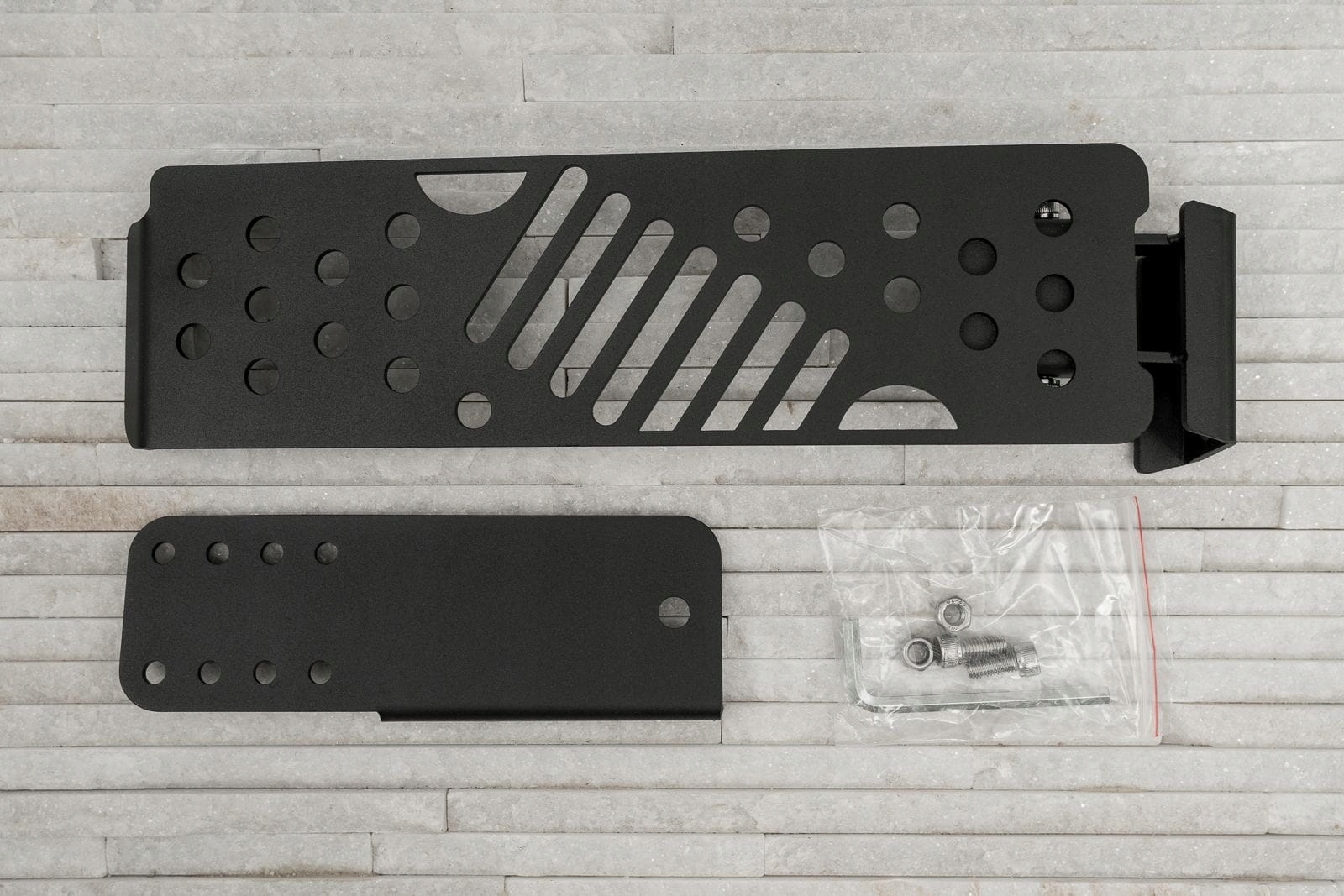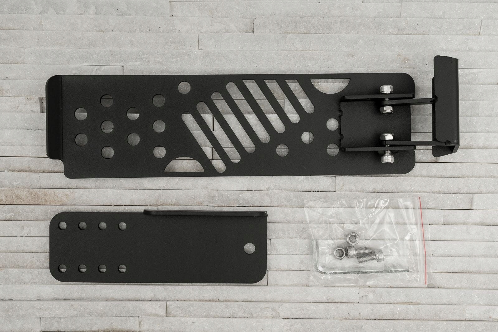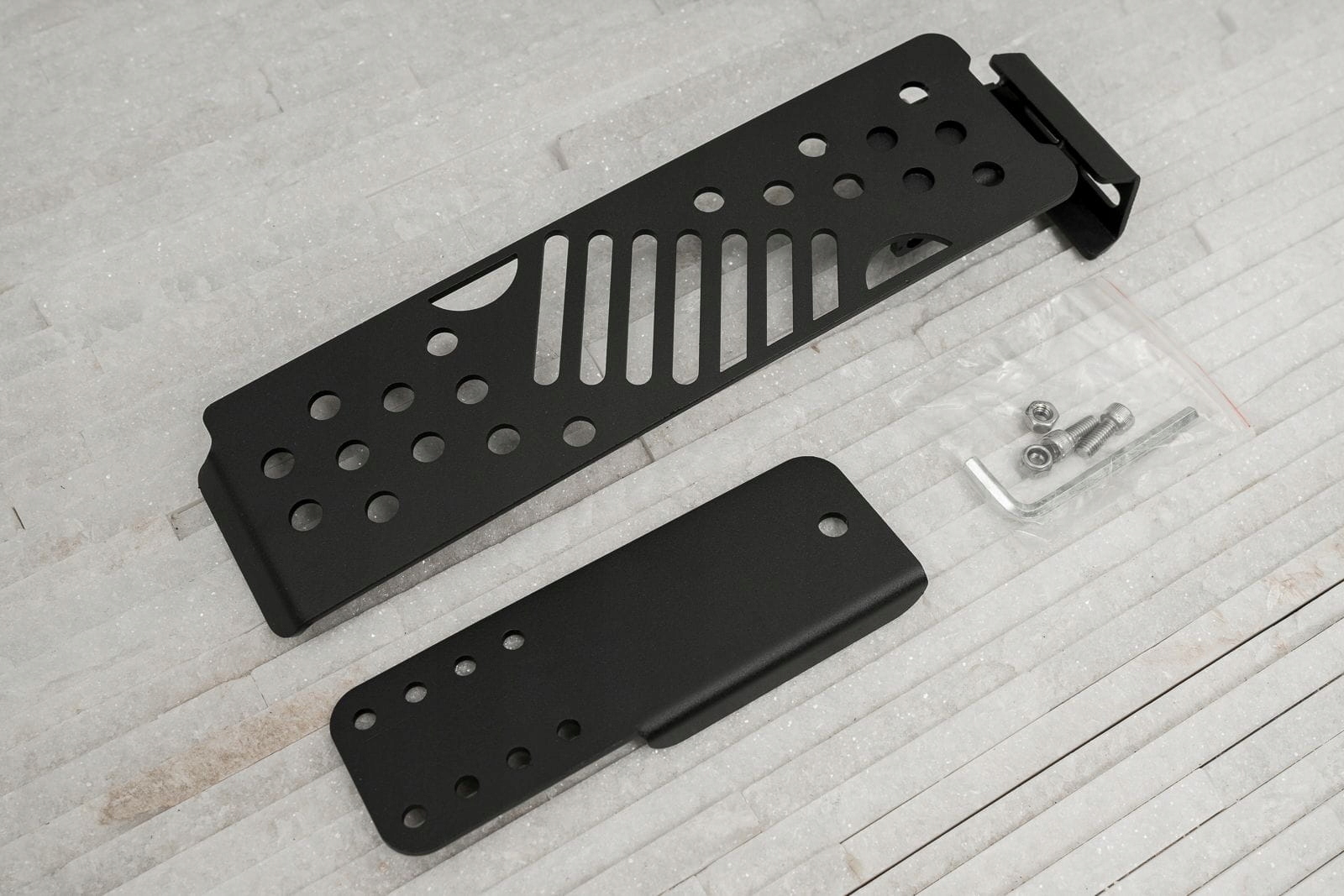 Перфорації на поверхні стояка запобігають ковзанню взуття, а стабільність цілого забезпечується встановленням опори на землю за допомогою елементів, прикріплених у наборі. Педаль встановлюється на стінку перегородки одним гвинтом, без будь -яких перешкод. Педаль має 4 можливі налаштування, які надають кожному драйверу знайти оптимальне положення на задній частині стопи.