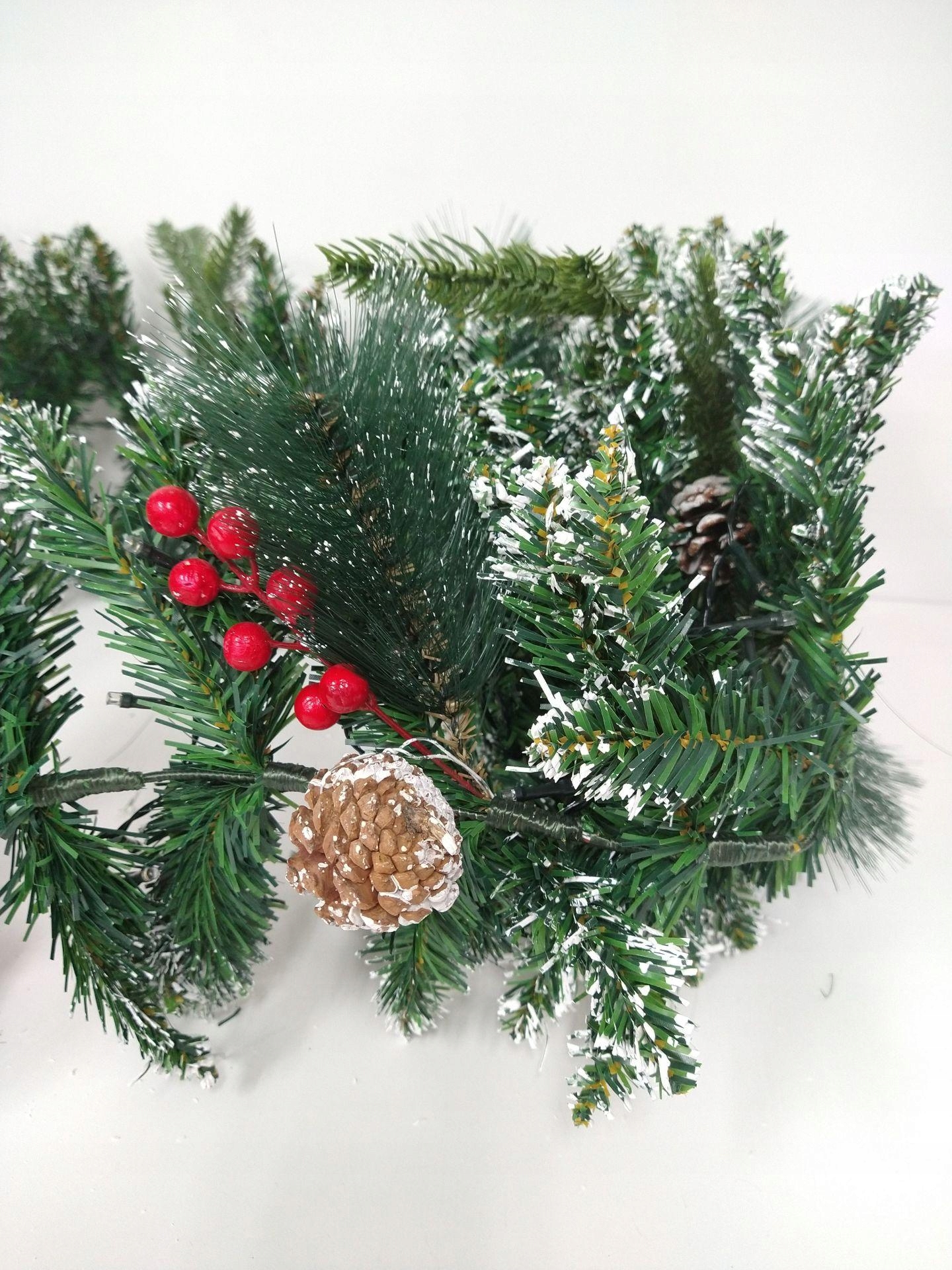 Girlanda joiedomi prelit радує свій природний вигляд завдяки різним прикрасам, такими як сніжинки, сніжинки, шишки та ягоди Холлі. Це класичне доповнення, яке представить святковий настрій з будь -яким інтер'єром.