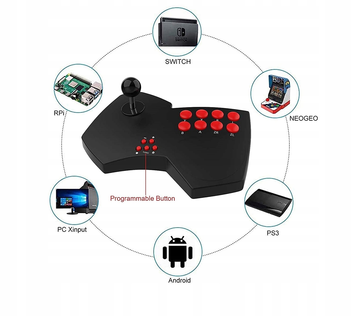 Відчуйте надзвичайне захоплення аркадними іграми з ностальгією: ви можете грати в ігри на кількох платформах (Nintendo Switch/PC/PS3/Android TV/Raspberry Pi/NeoGeo mini) за допомогою цього аркадного джойстика, підключи та грай. Ви будете насолоджуватися годинами розваг.