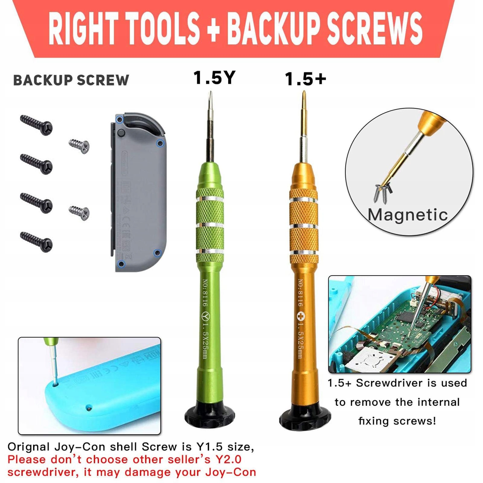 Повний ремонтний набір – відкривачка та шпунт включені! Для підключення кабелю Joystic до розетки також використовується відповідний пінцет. 4 додаткові гвинти Y1.5 запобігають пошкодженню або втраті оригінальних гвинтів.