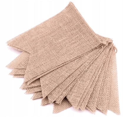 GIRLAND - підвісні вимпели з натурального джуту - чудове доповнення до вечірки, зустрічі чи весілля у вінтажному та природному стилі. Прикрасьте їх мереживом і отримайте романтичний аксесуар. Прапорці кріпляться на джутову нитку.