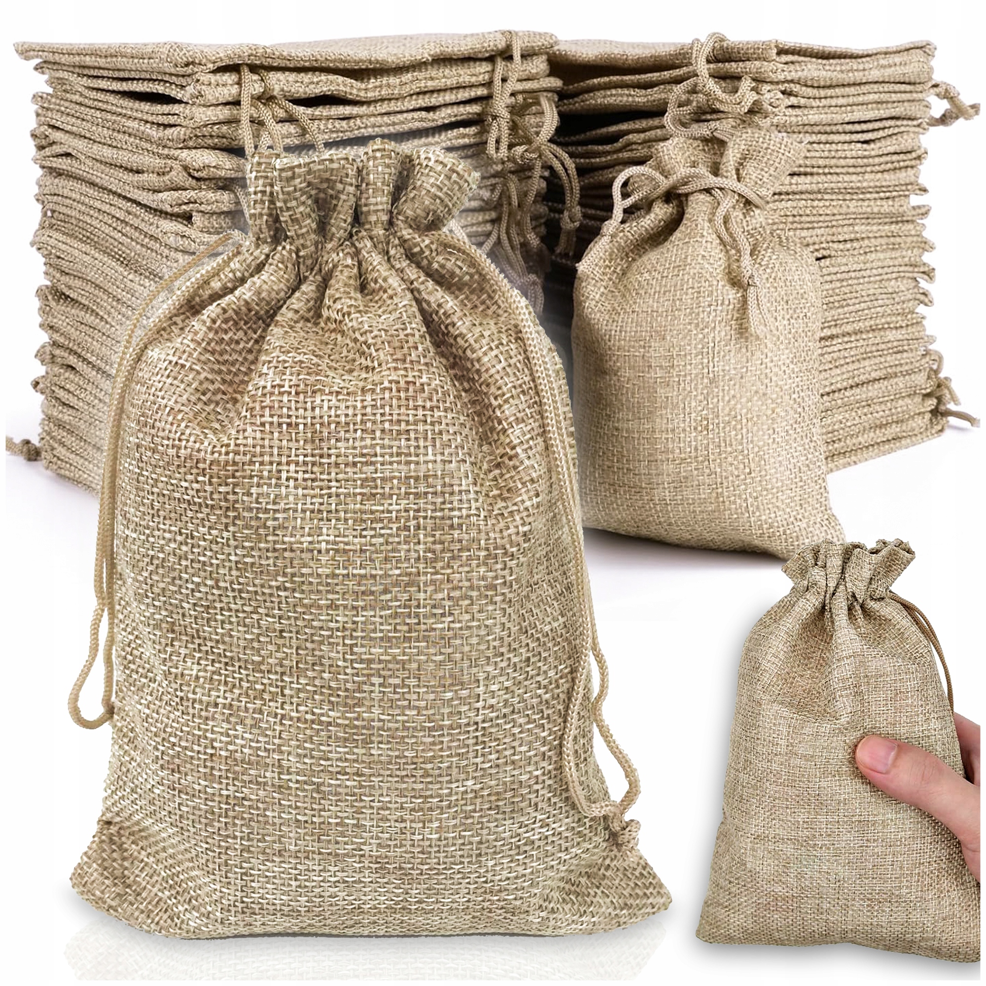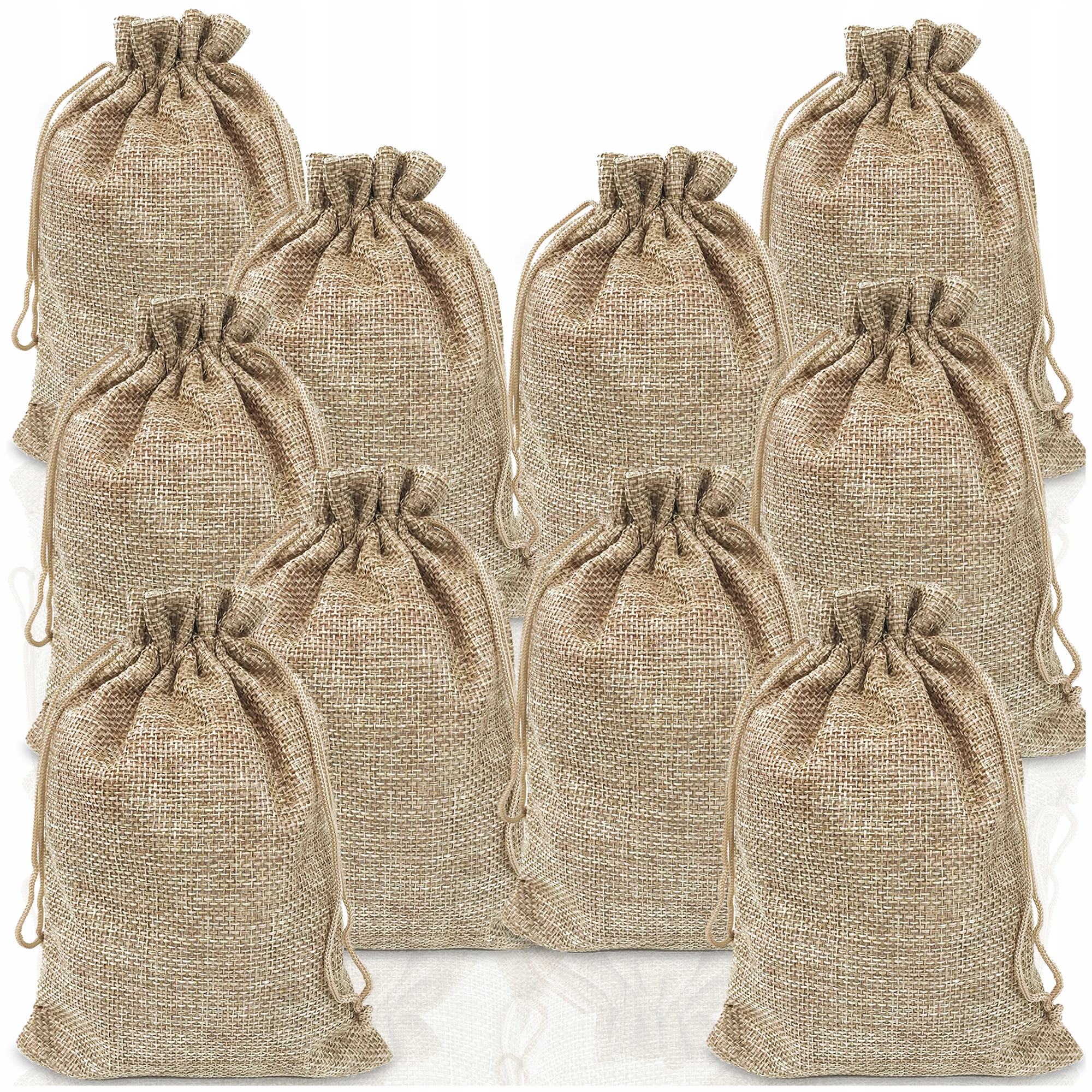 СУМКИ З ДЖУТУ/ЛЬОНУ НА ШНУРКУ 13×18 СМ – НАБІР 10 ШТУК
