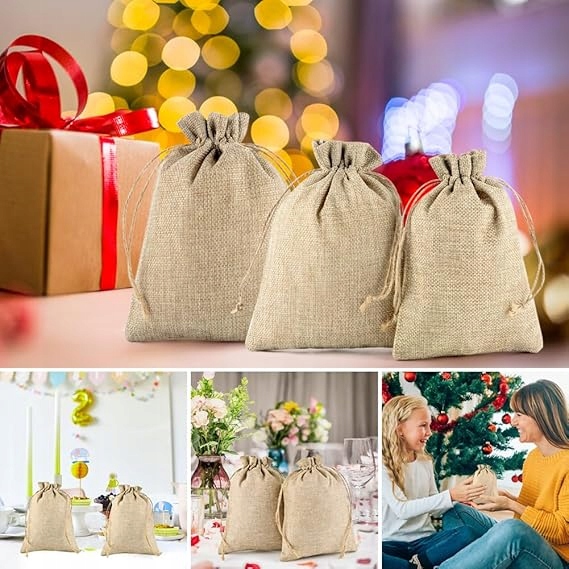 - Ущільнення: велика джутова сумка дуже естетична, міцна та зручна для транспортування. Кожна сумка з джуту оснащена внутрішнім шнурком, який можна легко закривати та відкривати, що робить речі більш естетичними, чистішими та зручнішими для зберігання.
