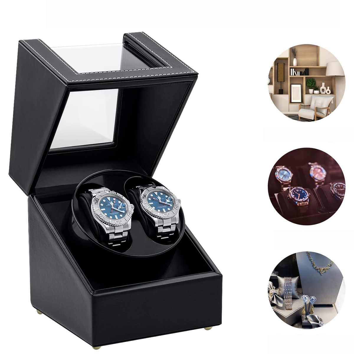 Завод для 2 годинників, заводчик для чоловіків і жінок, зарядка через USB-DC, автоматичний заводчик TPD 970-2430, два режими заводу для автоматичних годинників, заводник для годинника з PU шкіри – чорний