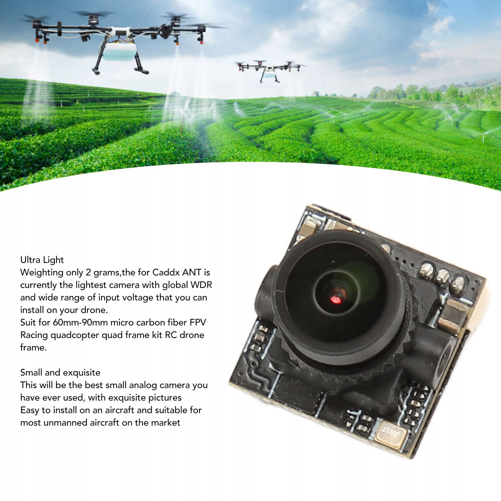 4. Ultra Light: Вага лише 2 грам, для Caddx Ant - це найлегша камера з глобальним WDR та широким діапазоном вхідної напруги, яка може бути встановлена ​​на безпілотнику. Перепродаж до 60 мм - 90 мм Micro Carbon FPV Racing Quadcopter Quadcopter Quad Kit Drone RC RC.