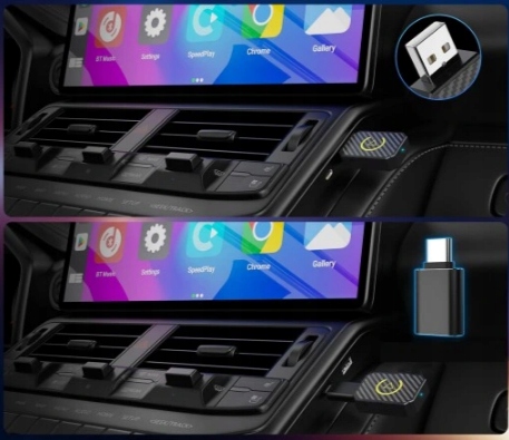 ✔ Подвійне підключення – бездротові CarPlay і Android Auto в одному пристрої