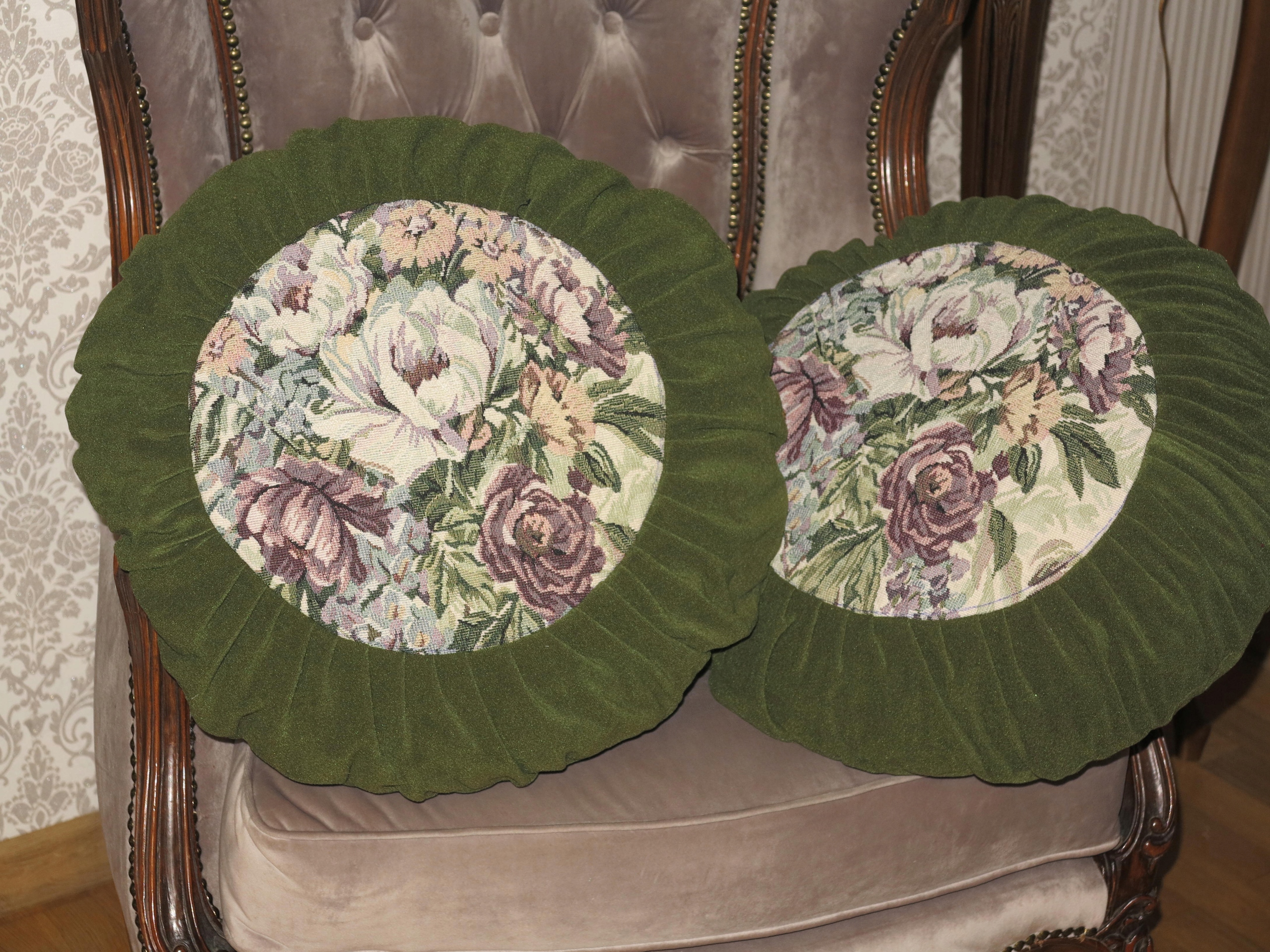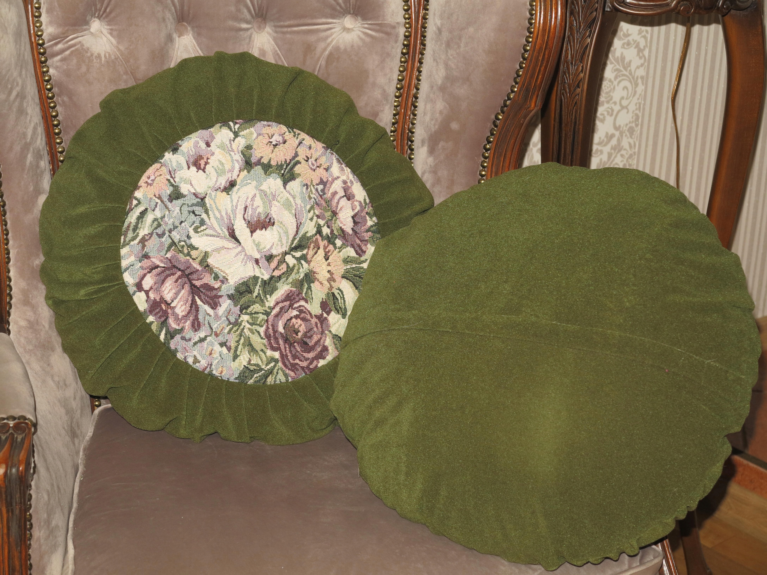 для поціновувача- унікальна краса, набір великої стильної антикваріату Круглі подушки з начинкою. У кольорі стильного зеленого