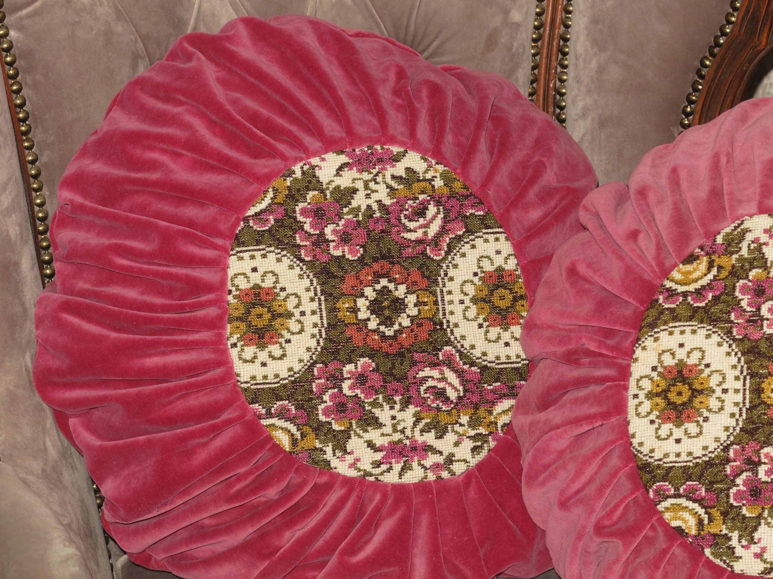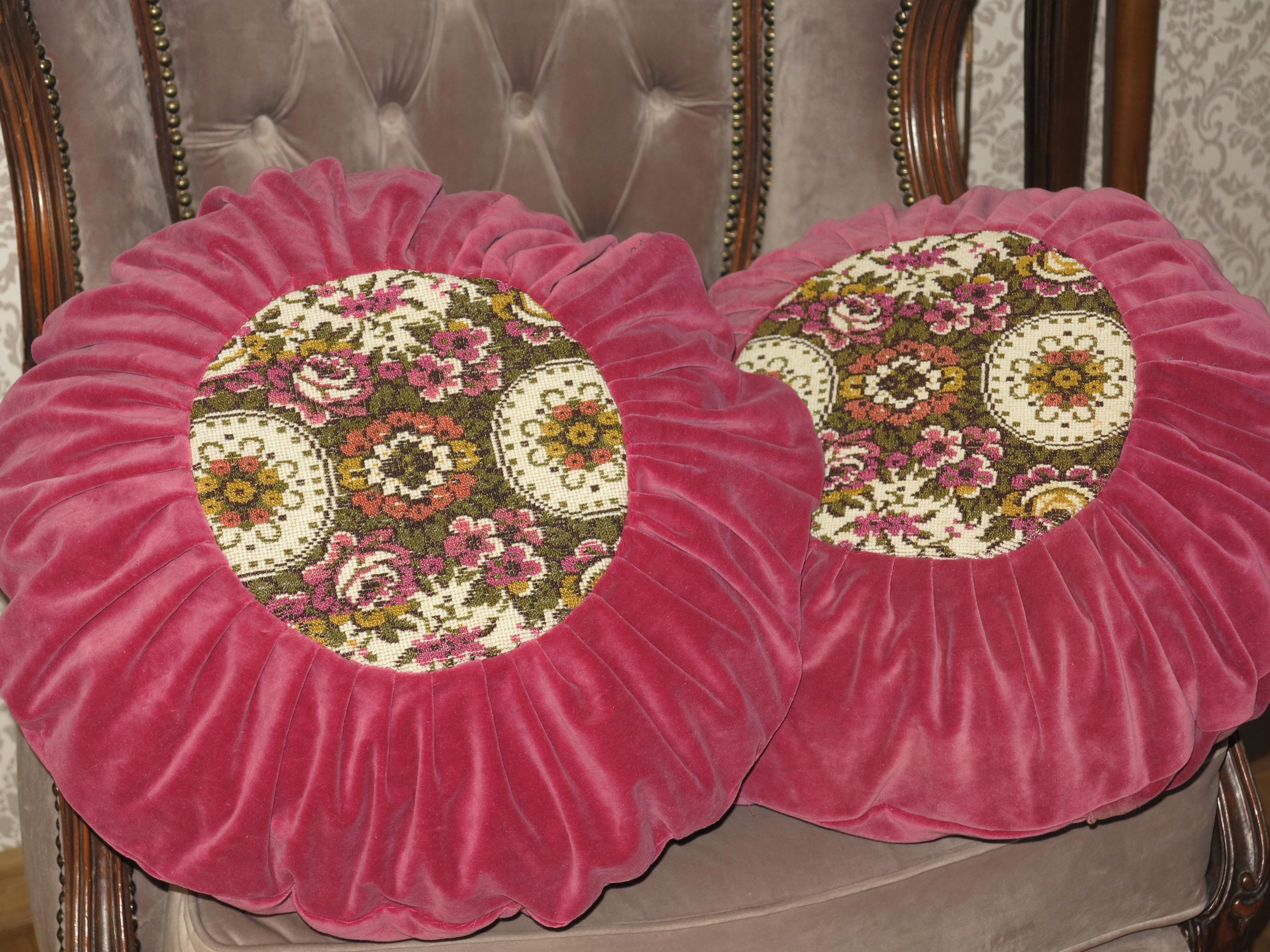 ДЛЯ АНТИКВАРІАТУ - ЧУДОВІ ПОДУШКИ З БАВОВНИ ОКСАМИТУ. АНТИЧНИЙ РОЖЕВИЙ ГОБЕЛЕН