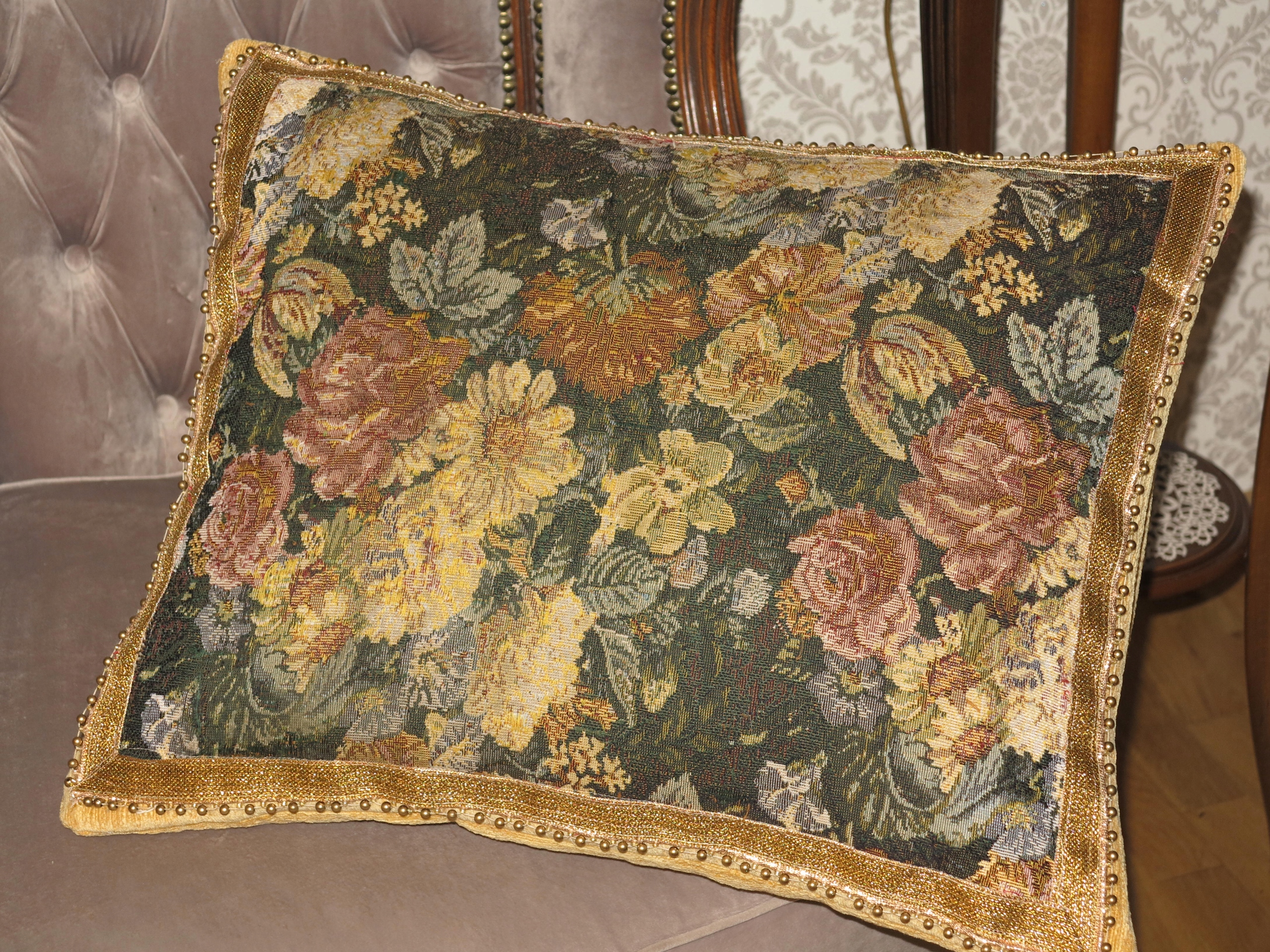 для антикваріату- надзвичайно красива стильна оксамитова велика подушка з гобеленом, з начинкою. Оформлена золотою галантерською мовою