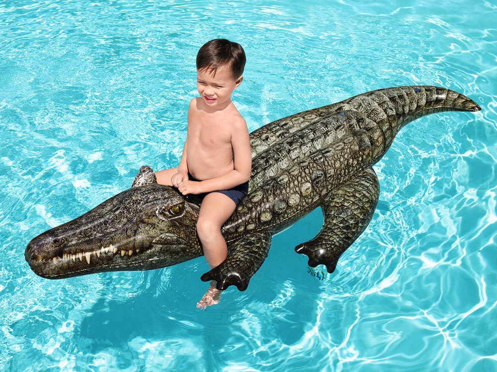 - Надувний крокодил — надзвичайно реалістична та чудова іграшка для використання у воді, ідеальна для дітей віком від 3 років. Ця плаваюча рептилія, виготовлена з міцного ПВХ, має розміри 193 x 94 см і максимальне навантаження 45 кг, забезпечує стабільність і безпеку під час гри. Має дві повітряні камери з клапанами для запобігання витоку. Ручка на спинці гарантує повну безпеку і комфорт для дітей. Виріб легкий, зручний і зручний у транспортуванні, насос не потребує. У набір також входить ремонтна латка. Завдяки крокодилу Bestway ваша дитина зможе провести незабутні моменти на воді в цьому сезоні!