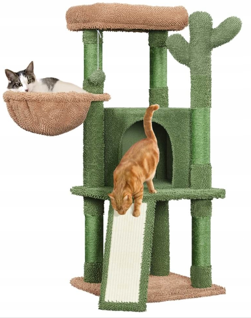 - Будиночок для котів «усе в одному» Зі зручною верхньою платформою з м’якою піною, теплий житловий простір , зручний кошик і п’ять дряпків на різній висоті, ця дряпка у формі кактуса є ідеальним рішенням для котів, щоб відпочити або точити кігті.