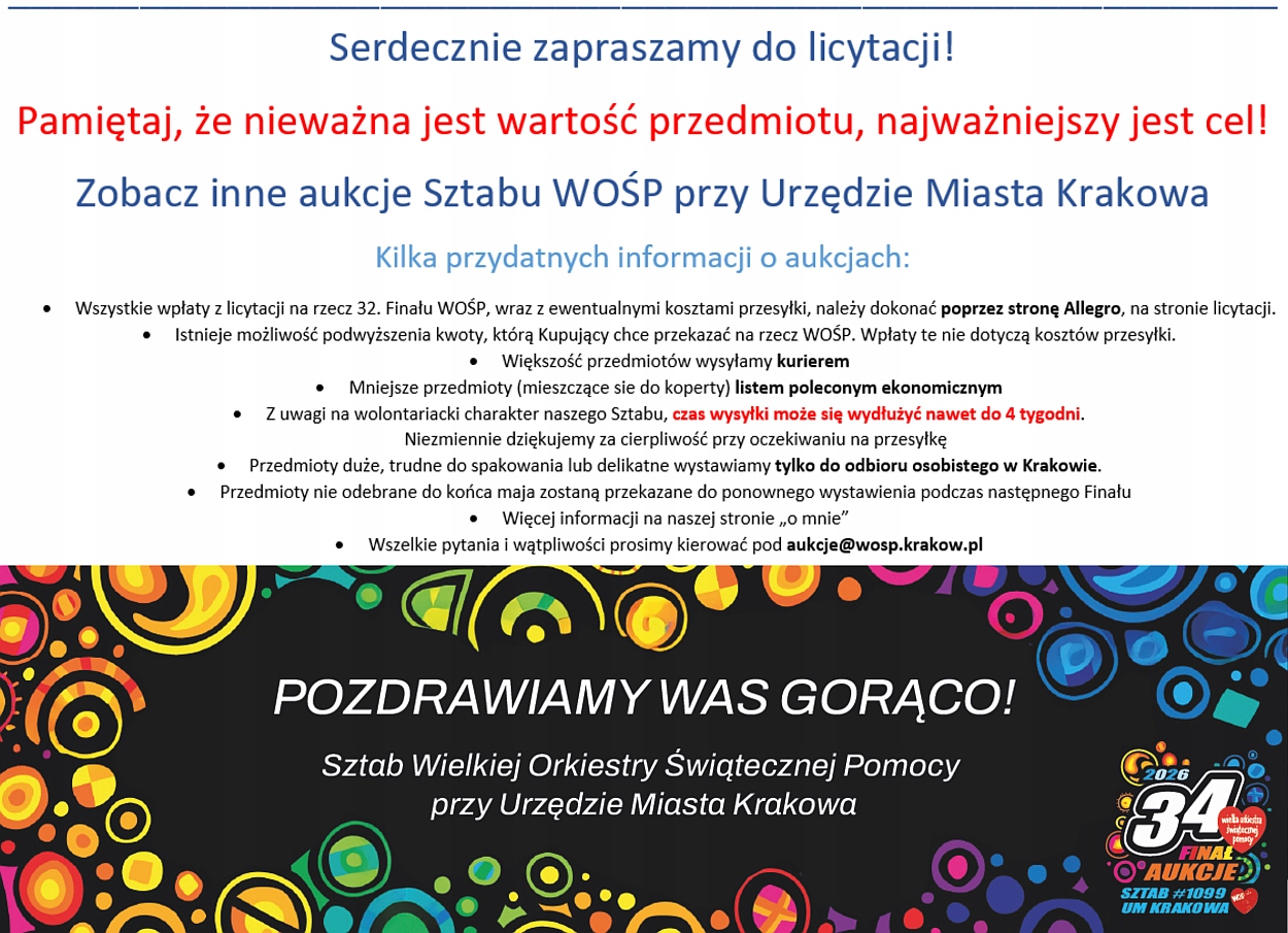 Від імені Центру культури «Краків-Нова Гута» запрошуємо вас взяти участь в унікальному аукціоні Великого оркестру різдвяної благодійності. У рамках нашого аукціону ми хочемо запропонувати вам унікальний набір гаджетів від Центру культури Краків-Нова Гута.