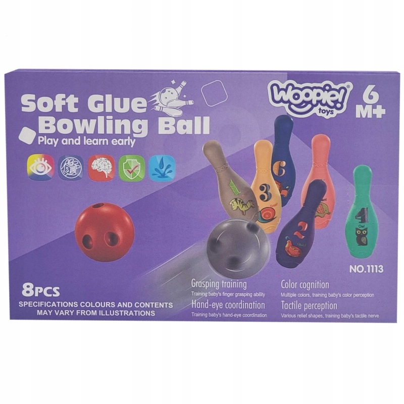 - Кольорові сенсорні кеглі для боулінгу від бренду Woopie — це все, що потрібно дітям, щоб розвивати моторику та водночас весело провести час. У набір входить 6 кеглів і 2 кулі з м'якого матеріалу. Нам не потрібно переконувати вас, що боулінг буде чудовою розвагою для вашої дитини, але він також принесе багато переваг для навчання. Кеглі для боулінгу можна стискати і мати поверхні з різними малюнками для стимуляції сенсорних і тактильних відчуттів. Іграшка розвиває моторику вашої дитини, зокрема, бігаючи та кидаючи