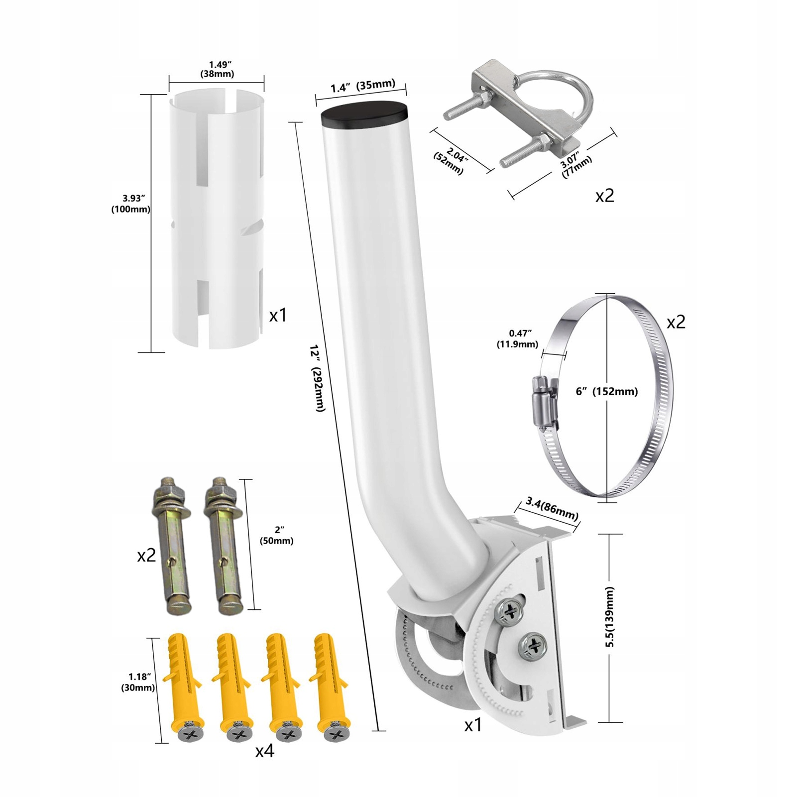 2. Матерія з нержавіючої сталі: антенна кронштейна виготовлена з матеріалу з нержавіючої сталі з нержавіючої сталі з високою, стійкою до іржі та корозії, забезпечуючи сильну підтримку руху та встановлення.