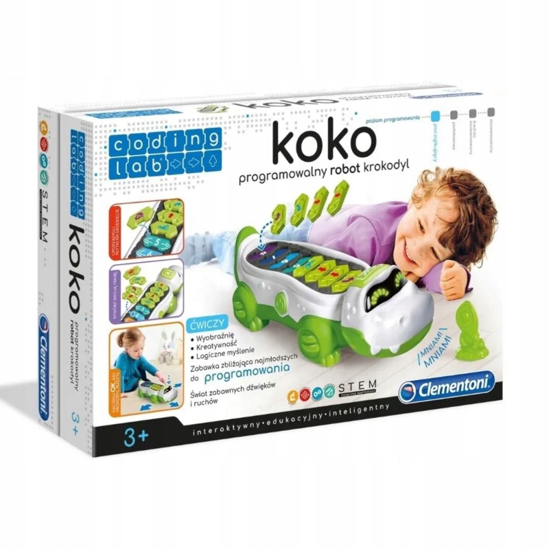 Коко - приємний крокодильний робот, друг дітей. Завдяки цьому діти можуть зробити перші кроки у світі програмування просто та смішно. Просто покладіть кермові плитки на спину і натисніть ОК. З 15 керуючими плитками, розміщеними на задній частині Коко, ви можете створити послідовності рухів і запрограмувати її для прогулянки та переходу до конкретних місць. Коко буде грати дітей із звуковими ефектами. Li>