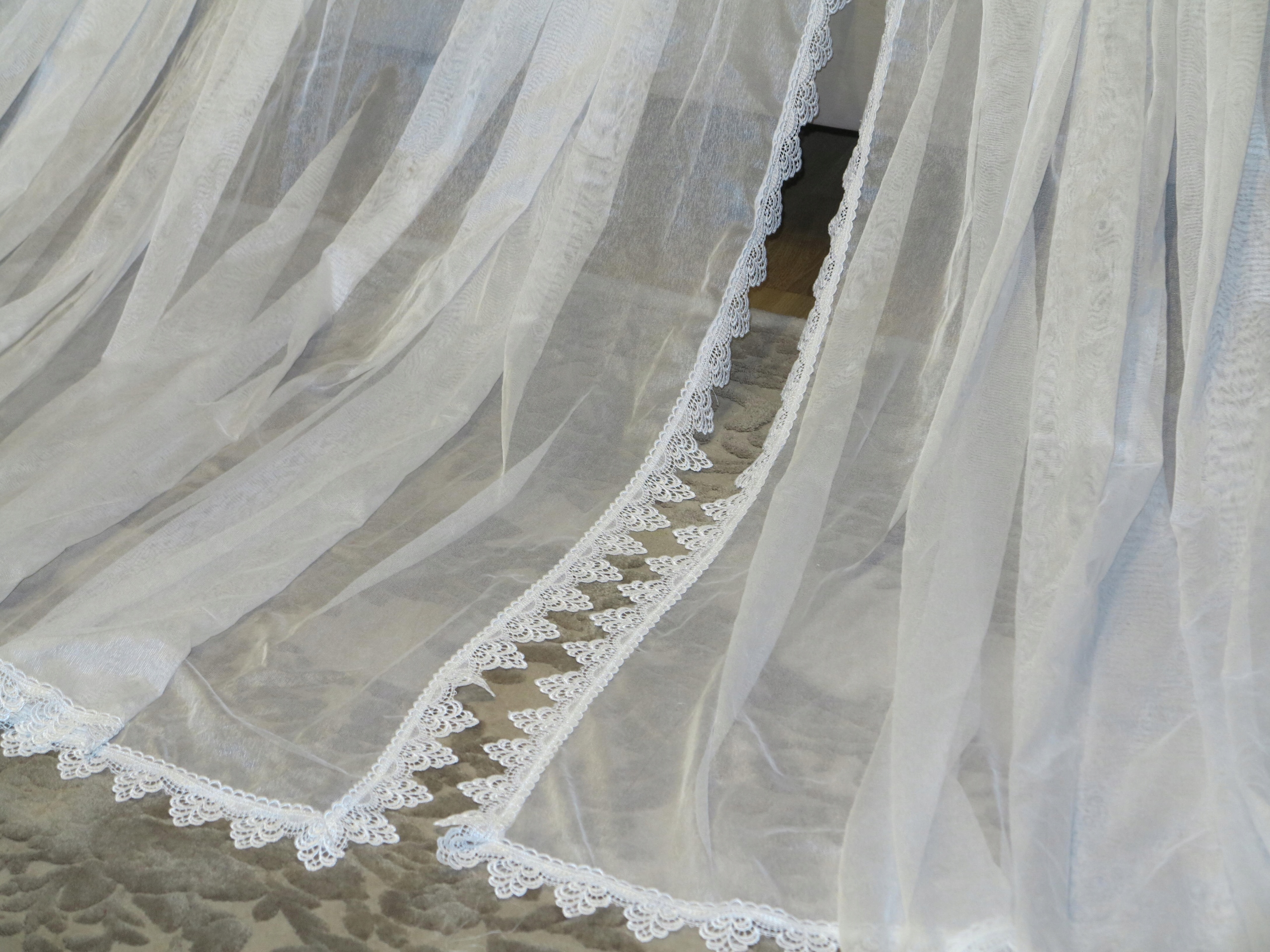 Предмет аукціону - гарна величезна штора з гіпюровим мереживом і застібками, що складається з двох окремих половинок, які кріпляться з боків. Рекомендую, виглядає дуже романтично. Щиро рекомендую.