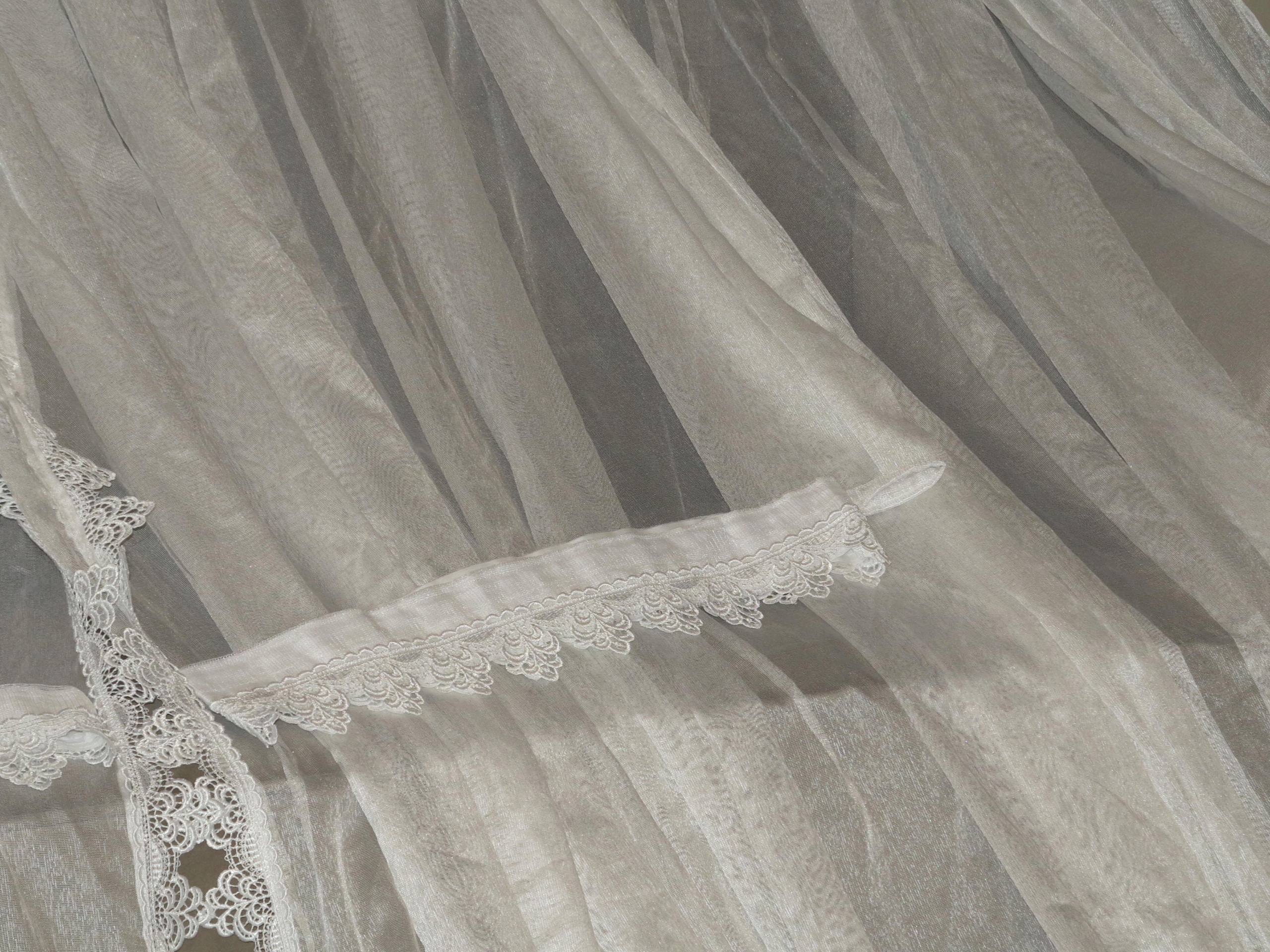 ДО САДИБИ - ЧУДУ БІЛУ РОМАНТИЧНУ ВЕЛИЧЕЗНУ ШТОРУ, ЩО СКЛАДАЄТЬСЯ З ДВОХ ОКРЕМИХ ПОЛОВИН, ЩО КЛАДУТЬСЯ З БОКІВ. ВНУТРІШНІ КРАЇ ОБРОБЛЕНІ ГІПУРСОВИМ МЕРЕЖИВОМ. ВОНО ДУЖЕ НІЖНО ВИГЛЯДАЄ НА ВІКНІ І НЕ ОБТЯЖУЄ ЙОГО, ХОЧА ТАКА МЕТРОВА ШИРИНА. САМА ШТОРА В М'ЯКОМУ ЯКІСНОМУ ТЕНЗІ