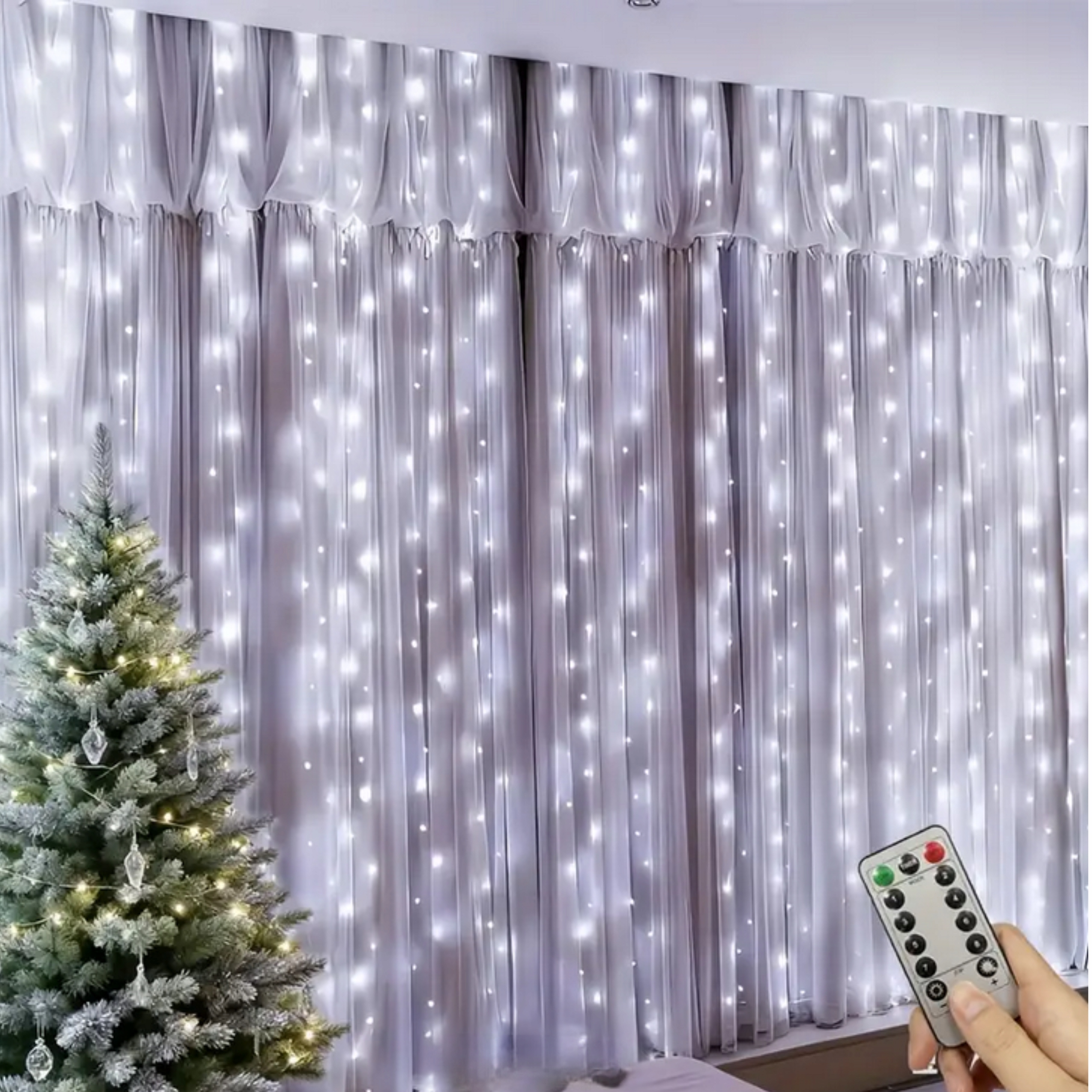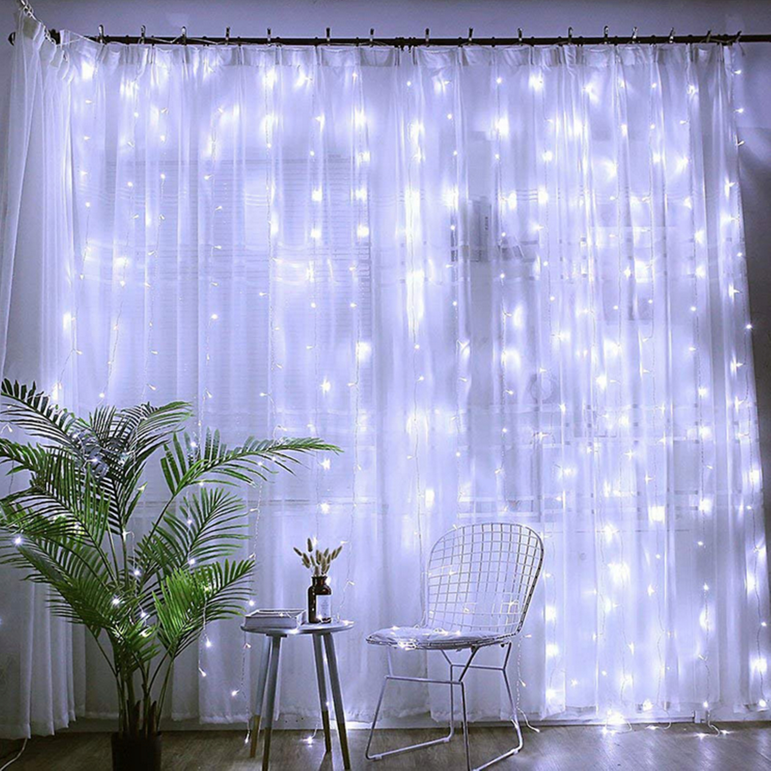 ДЛЯ ВІКНА 200 СВІТЛОДІОДНИХ РІЗДВЯНИХ ВІГНІВ ЗАВІСКА ХОЛОДНА БІЛА 3x2 ДИСТАНЦІЙНЕ ДЕКОРАЦІЯ