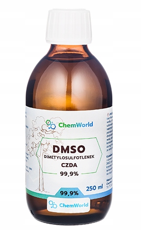 Щоб ДМСО не контактував з пластиком або металом і був захищений від сонячних променів, він упакований в спеціальну медичну пляшку з коричневого скла з терміном придатності, спеціальними методами виробництва медичного скла ДМСО зберігався в ідеальних умовах для цієї рідини. Продукт захищений оригінальною голограмою ChemWorld, яка гарантує оригінальність, чистоту та найвищу якість продукту.