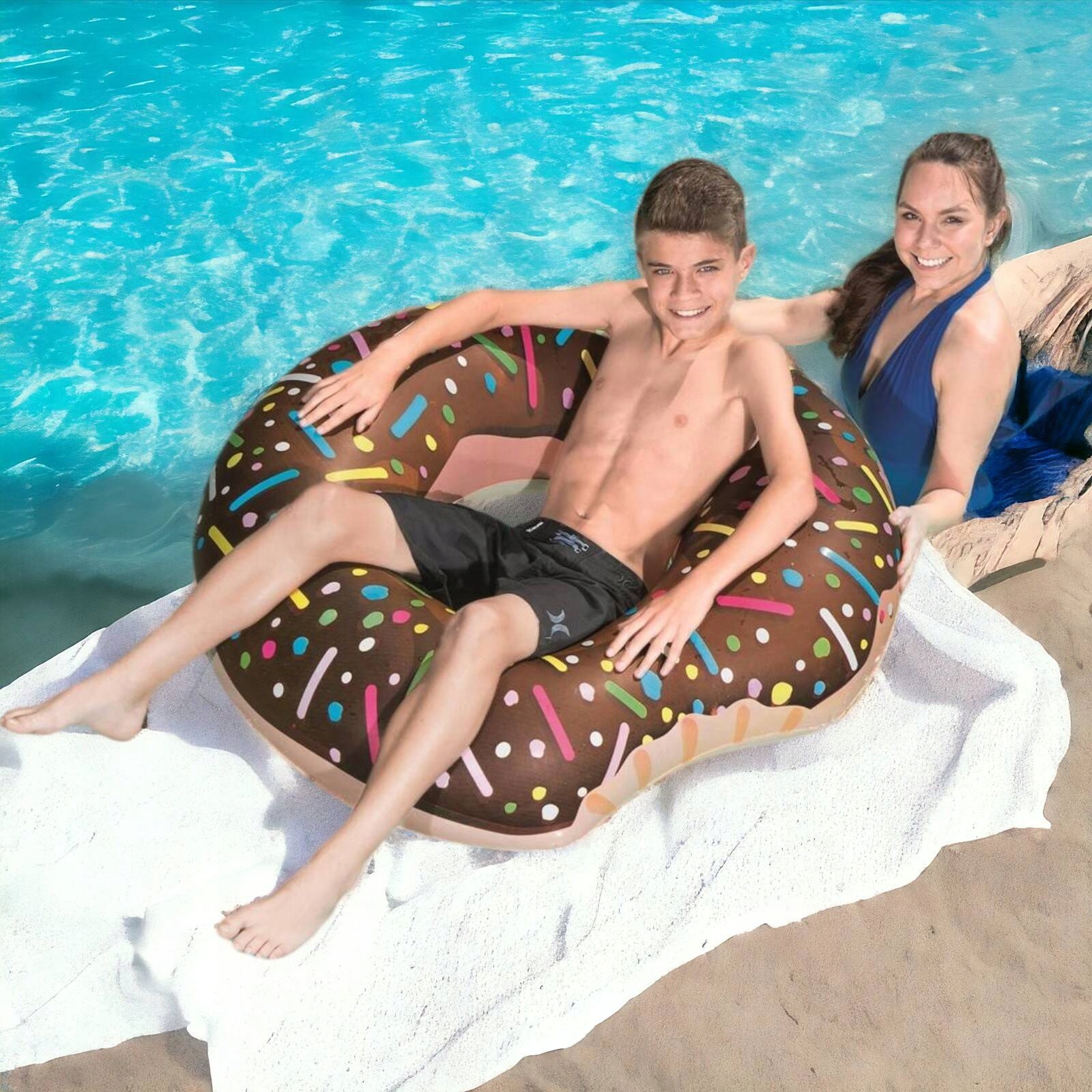 ✔️ Завдяки своєму контрастному кольору кільце привертає увагу та додає. чарівність будь-якого літнього пейзажу. Надзвичайно стійкий на воді, він гарантує чудове задоволення в спекотні дні. Його можна використовувати як у воді, так і на піску, що робить його ідеальним як для пляжу, так і для басейну.