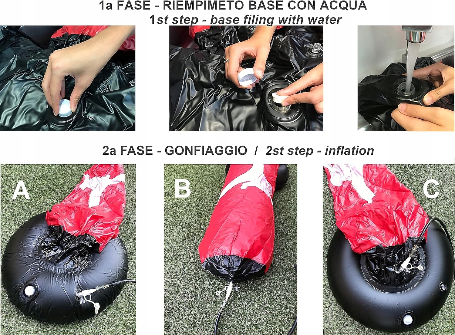 Чудова розвага для дому та саду. Ви можете розмістити надувну боксерську грушу буквально скрізь! Він ідеально підходить для використання в кімнаті для тренувань, в саду або у вітальні. Наповнений повітрям боксерський мішок дуже легкий і реагує на будь-який удар, але основа, обтяжена водою або піском, стабілізує його. Кожен удар приводить мішок у рух, а повітря всередині швидко повертає мішок у вертикальне положення!