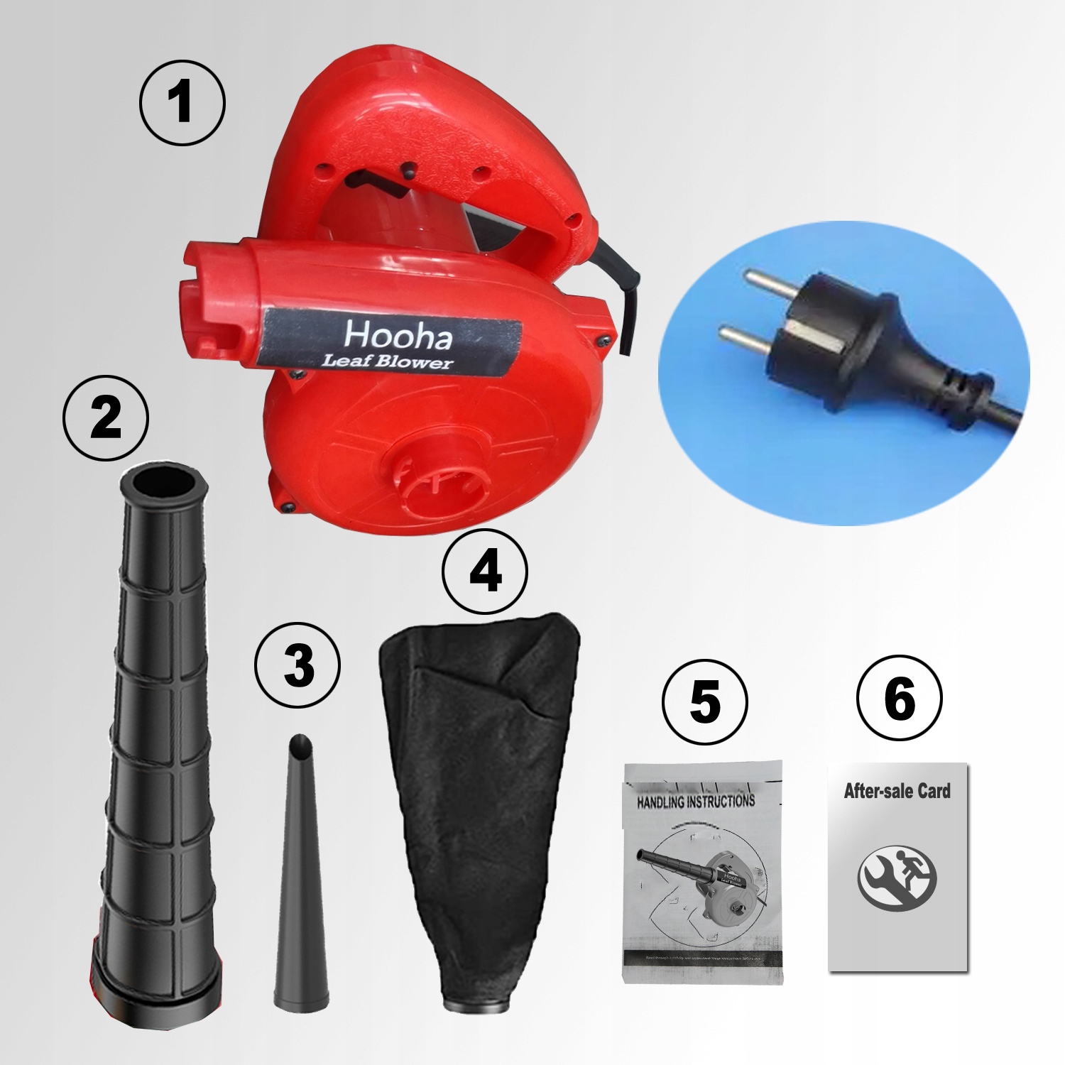 - Удосконалені компоненти У доступних на ринку випускних отворах для насадок ручна повітродувка Hooha оснащена високоякісними насадками з ПВХ, які не тільки товщі та альтернативніші, але також мають більшу швидкість збирання повітря та більшу потужність вітру. Функція полягає в насадці наконечника з розширенням регулювання вітру для всмоктування дрібних частинок пилу з віконних щілин, щілин на сидіннях автомобіля, вхідних щілин тощо. (Рекомендація: насадка наконечника означає лише збір пилу. Якщо використовується для видування, не допускайте перерв у роботі довше 5 хвилин.